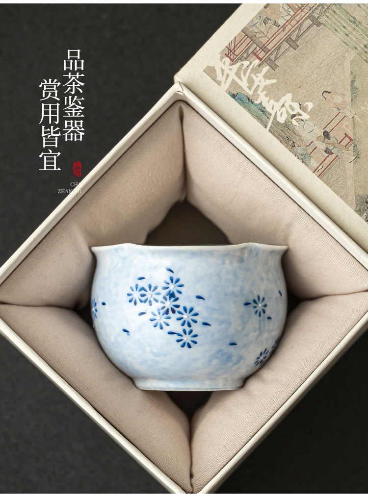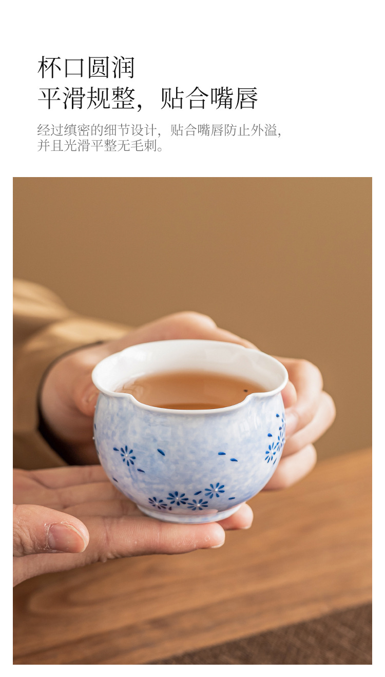 Cốc nụ hoa cúc xanh, cốc trà, cốc chủ bằng gốm, cốc đơn, cốc uống trà chuyên dụng cá nhân, cốc trà sang trọng nhẹ, cỡ lớn