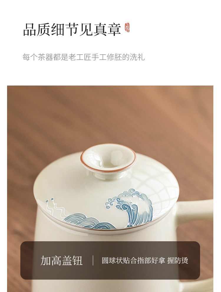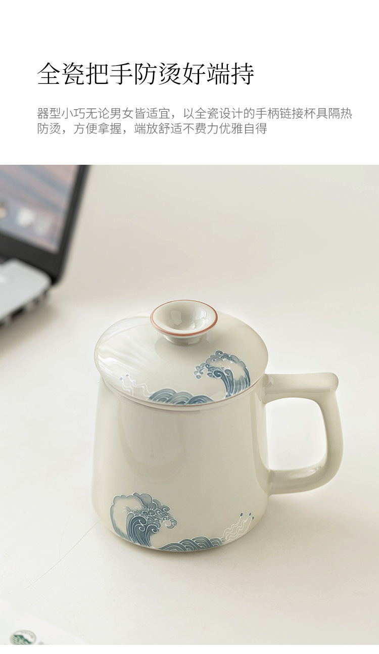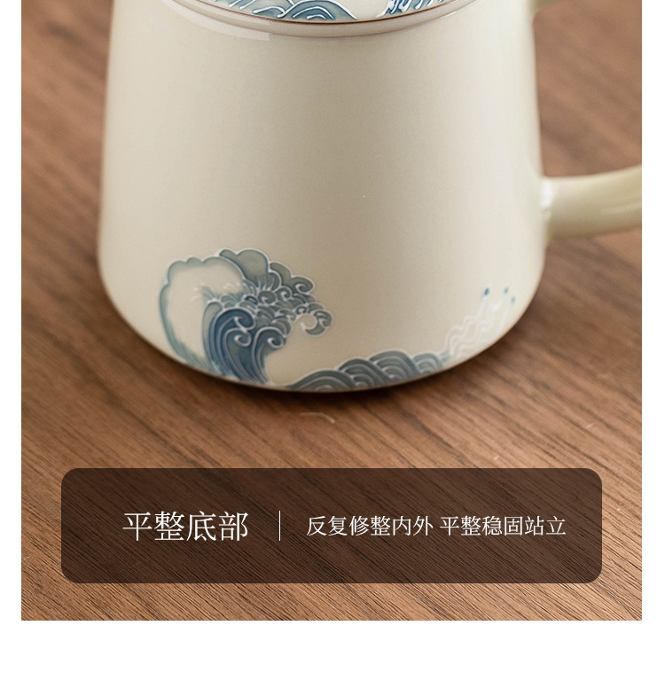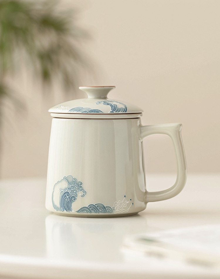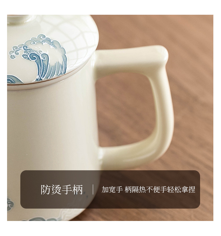 - Cốc nước chạm khắc sóng biển vẽ tay cốc gốm sứ gia dụng có nắp cốc trà tách trà lớn cốc văn phòng cốc nước