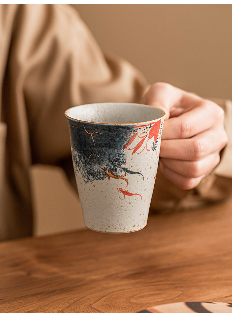 Cốc nước đỏ đá lửa trắng xanh cốc cao cấp tinh xảo sơn vàng vẽ tay hoa sen Koi cốc cà phê cốc trà cỡ lớn chống bỏng