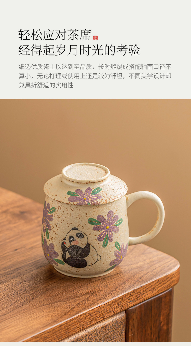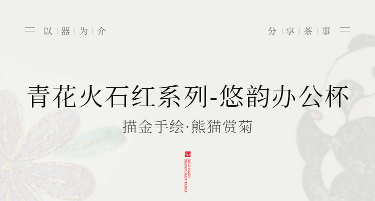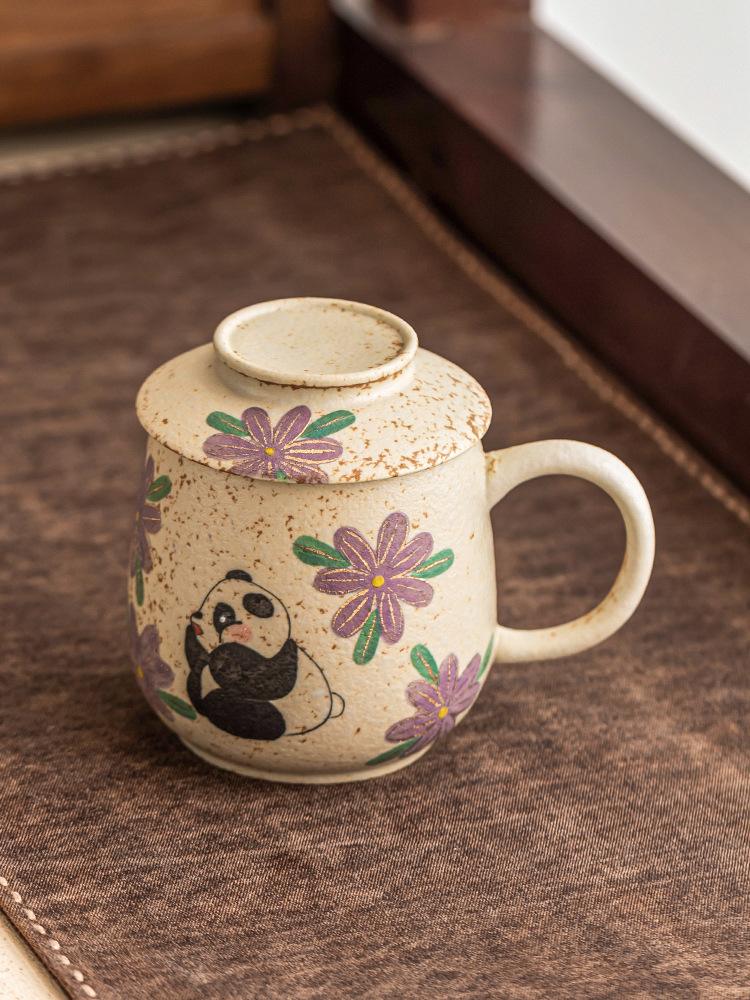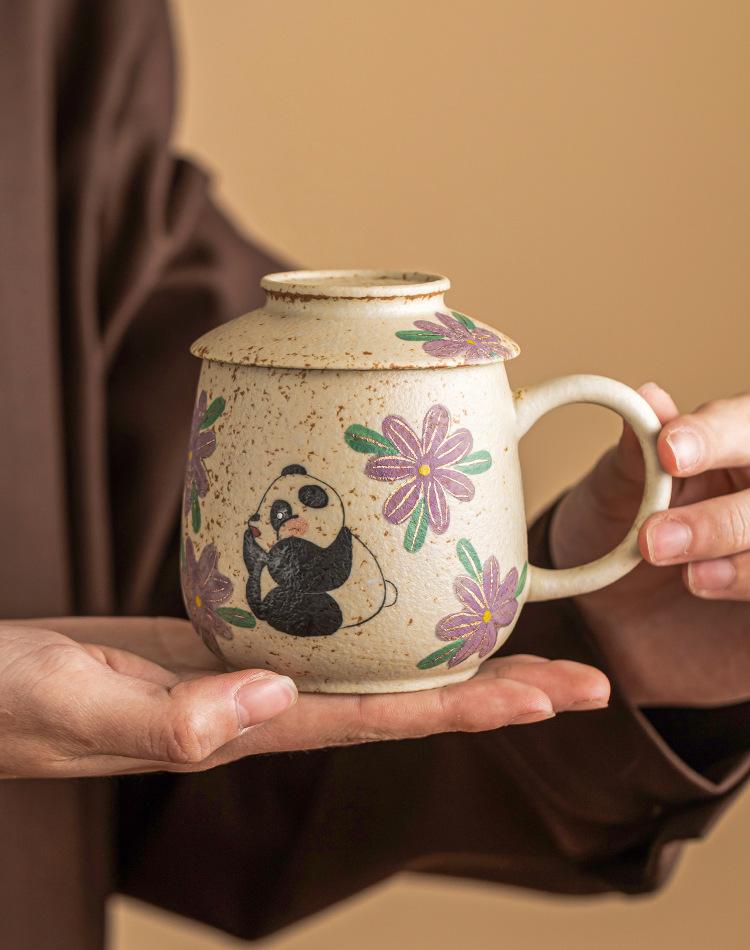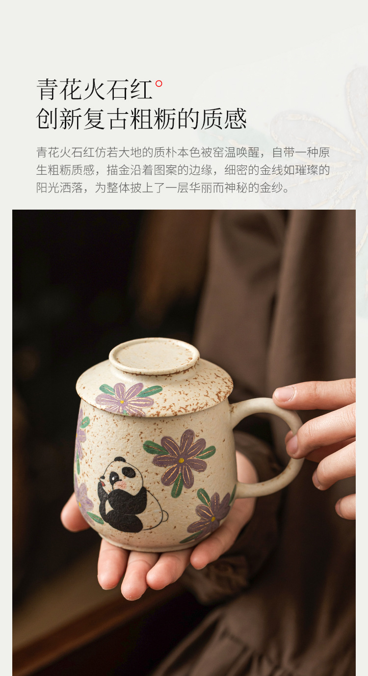 Cốc nước gốm sứ đỏ đá lửa trắng xanh, cốc văn phòng vẽ tay gấu trúc vẽ tay hoa cúc, cốc uống nước gia dụng, cốc trà