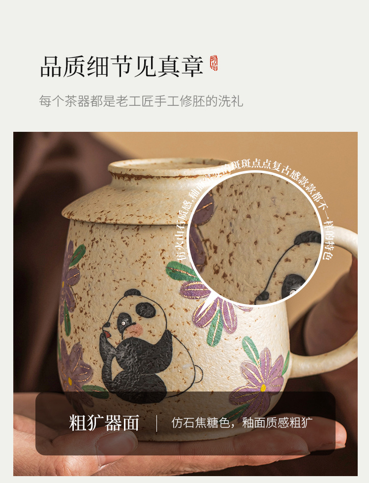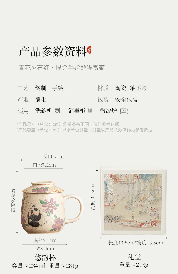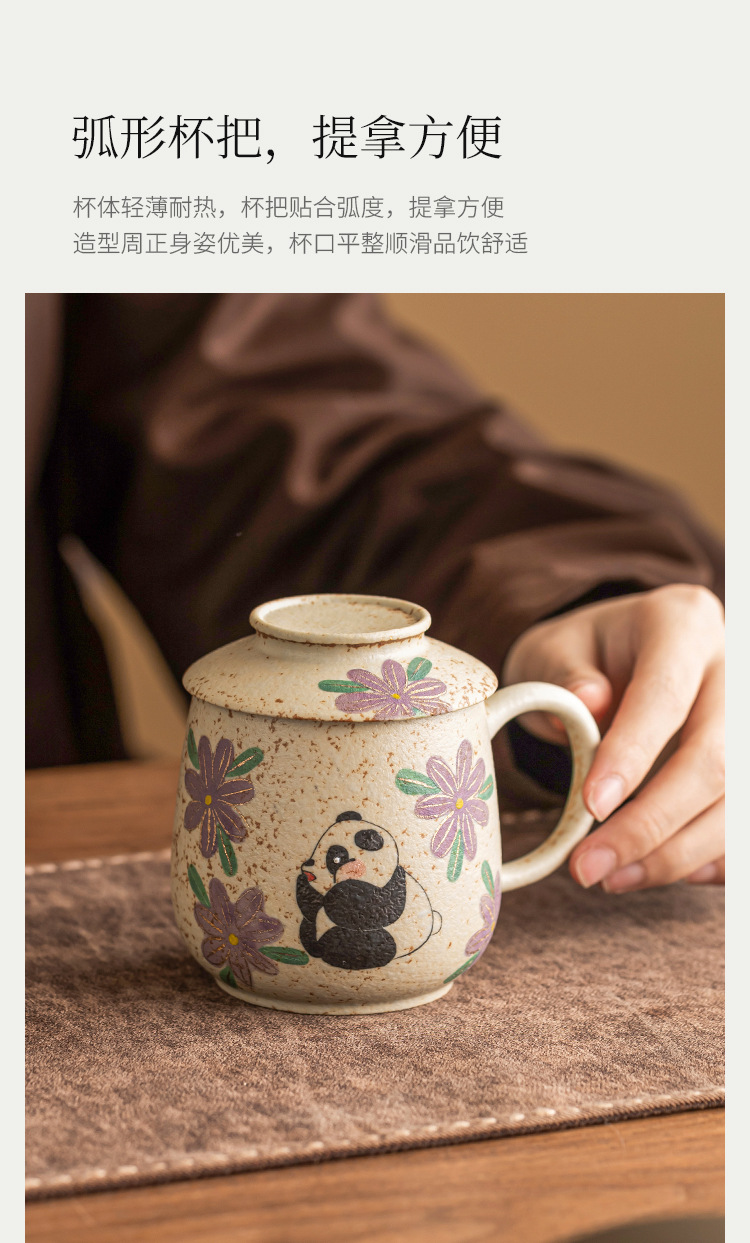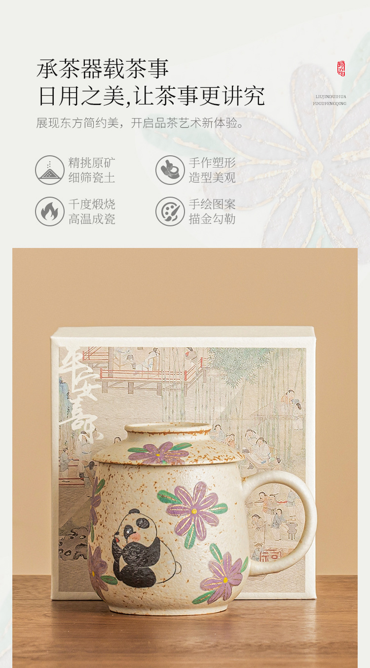 Cốc nước gốm sứ đỏ đá lửa trắng xanh, cốc văn phòng vẽ tay gấu trúc vẽ tay hoa cúc, cốc uống nước gia dụng, cốc trà
