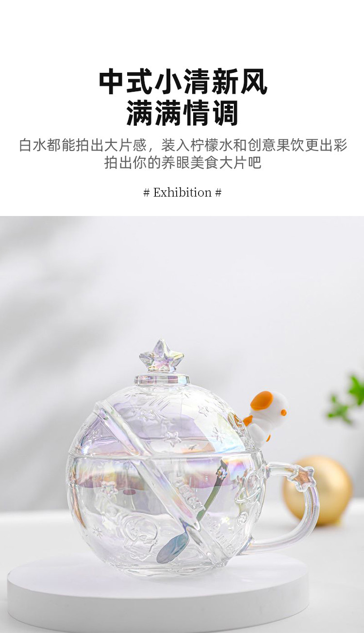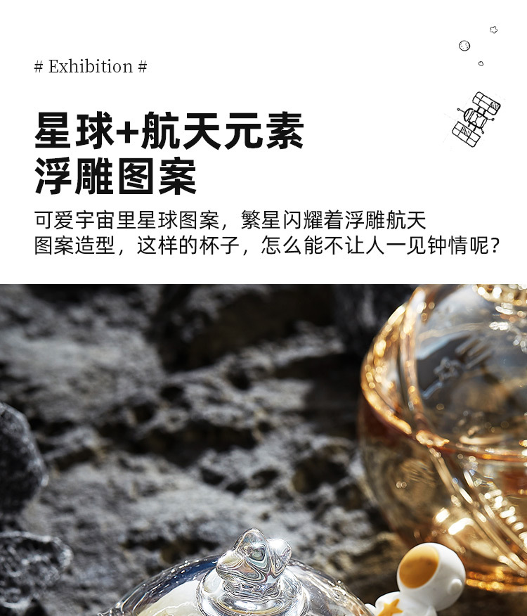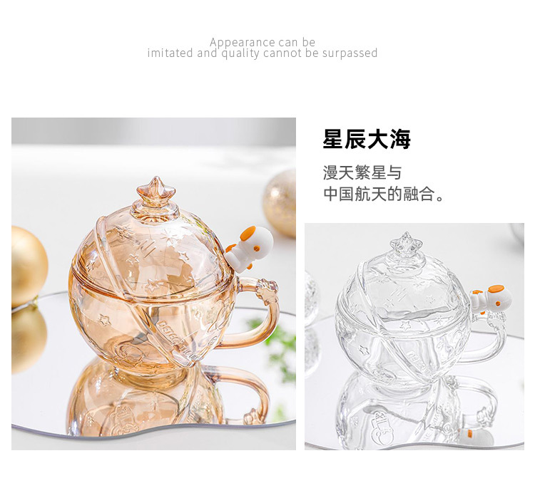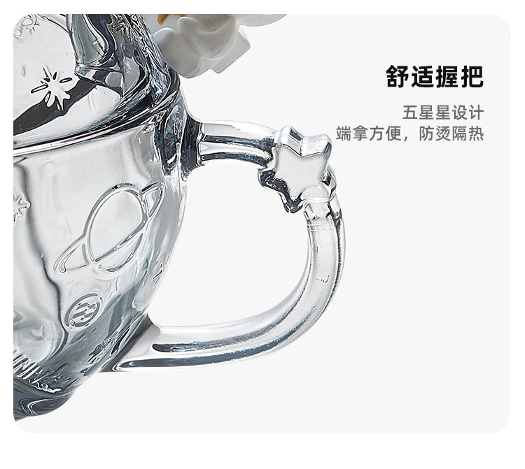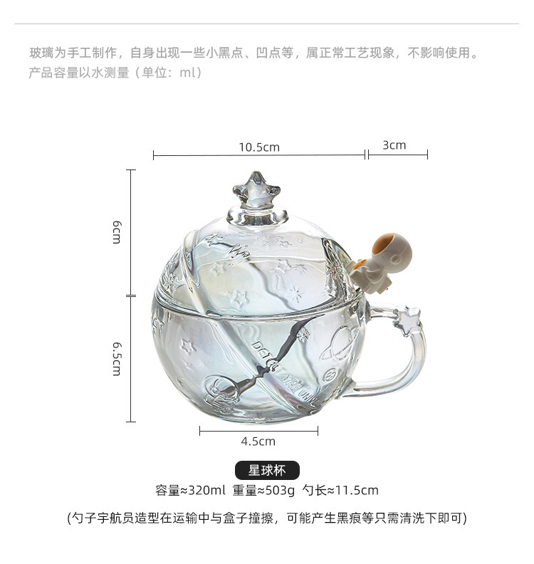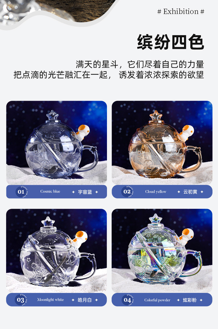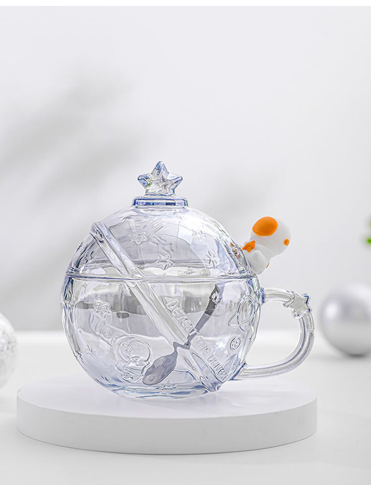 Cốc nước hành tinh đồng Thương hiệu Phi Hành Gia cốc sữa trái tim cô gái dễ thương cốc ăn sáng thủy tinh chịu nhiệt cốc cà phê có thìa nắp
