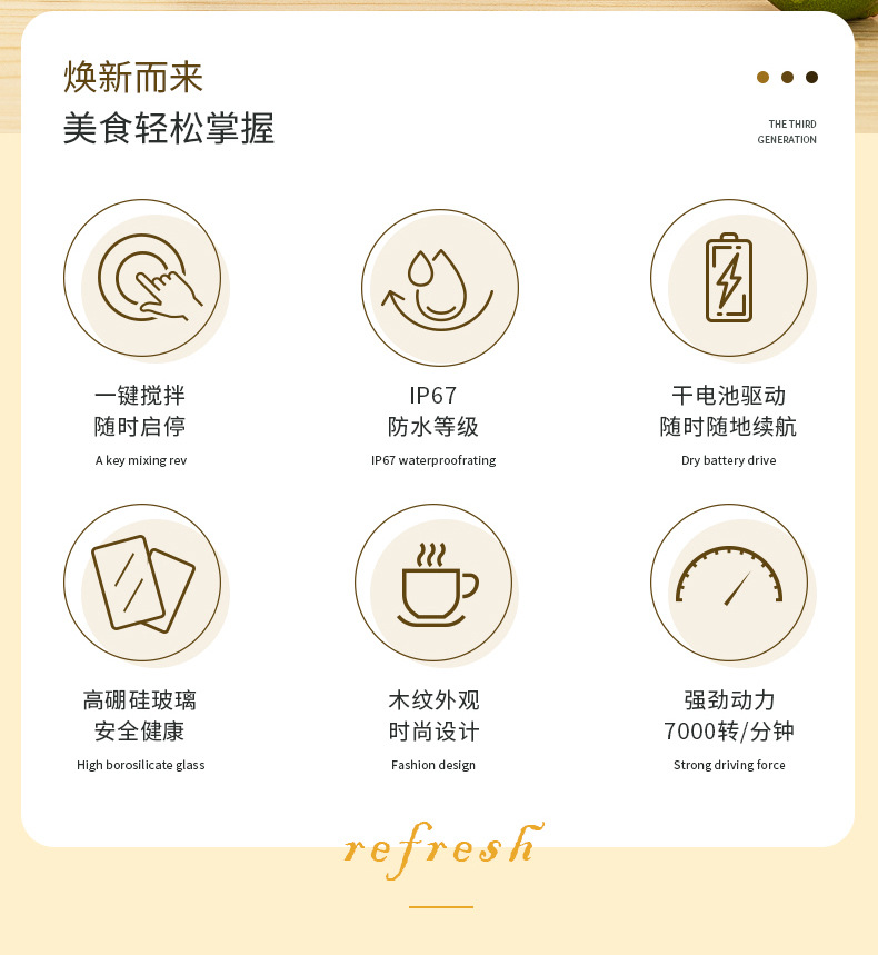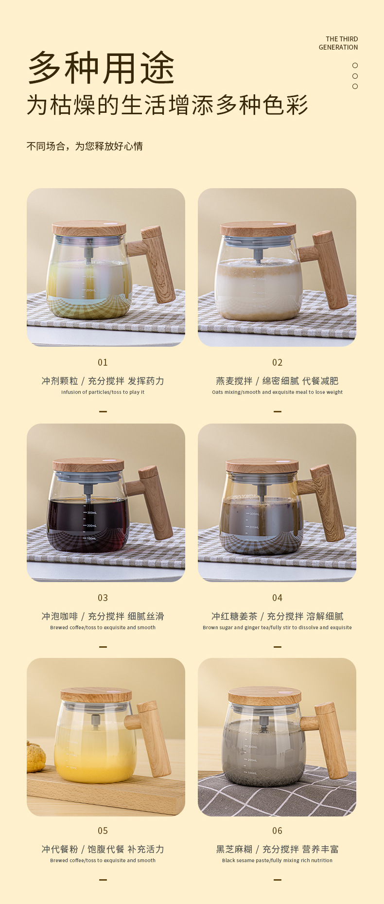 (2).按键充电款:高硼硅玻璃,杯盖+手柄ABS材质水转印,搅拌棒食品级pp材质,内盖pp材质,盖子内置电池包设计,tpc接口充电