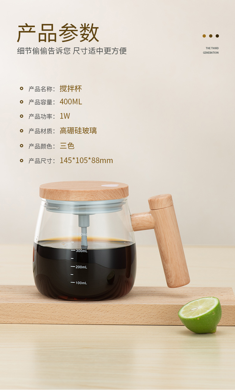 (3).触摸充电款:高硼硅玻璃,杯盖+手柄ABS材质水转印,搅拌棒食品级pp材质,内盖pp材质,盖子内置锂电池+线路板设计,锂电池型号10440,350毫安,tpc接口充电
