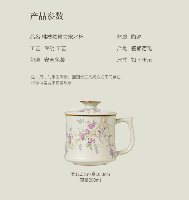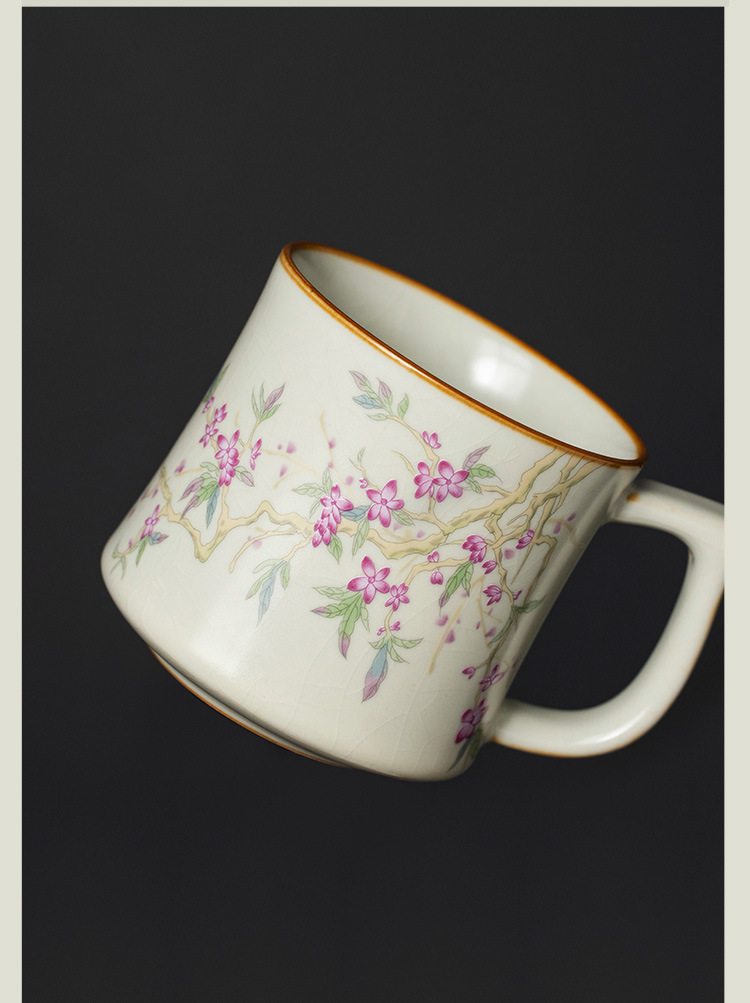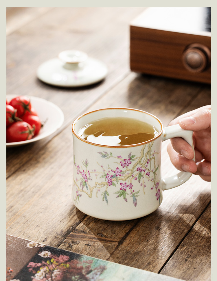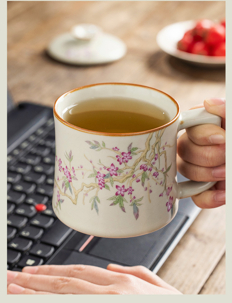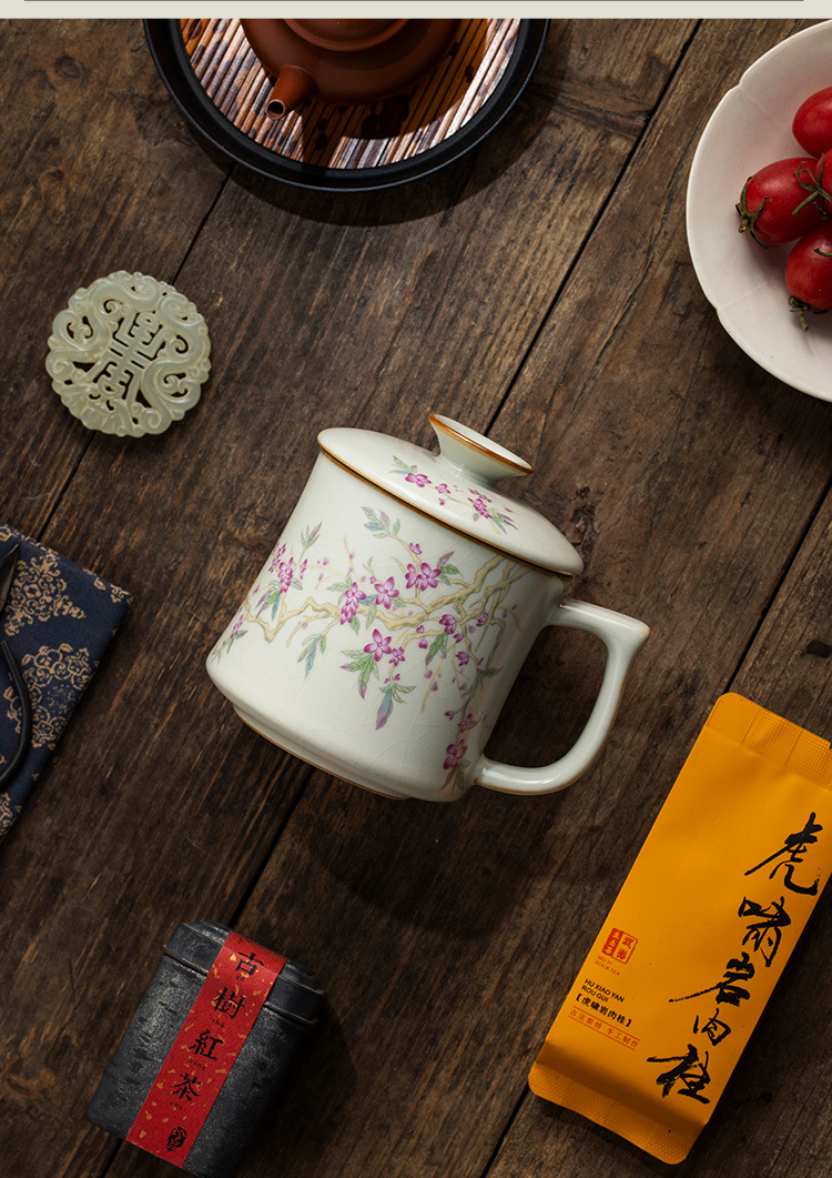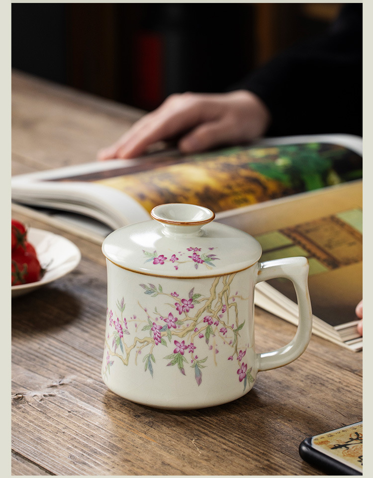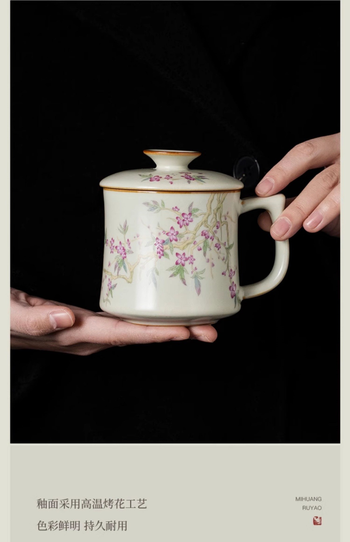 Cốc pha trà bột cành đào Ruyao cốc sứ cốc văn phòng chuyên dụng cá nhân cốc nước có nắp