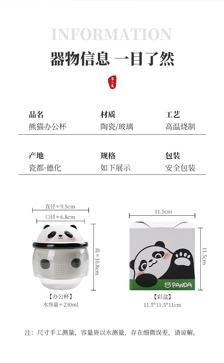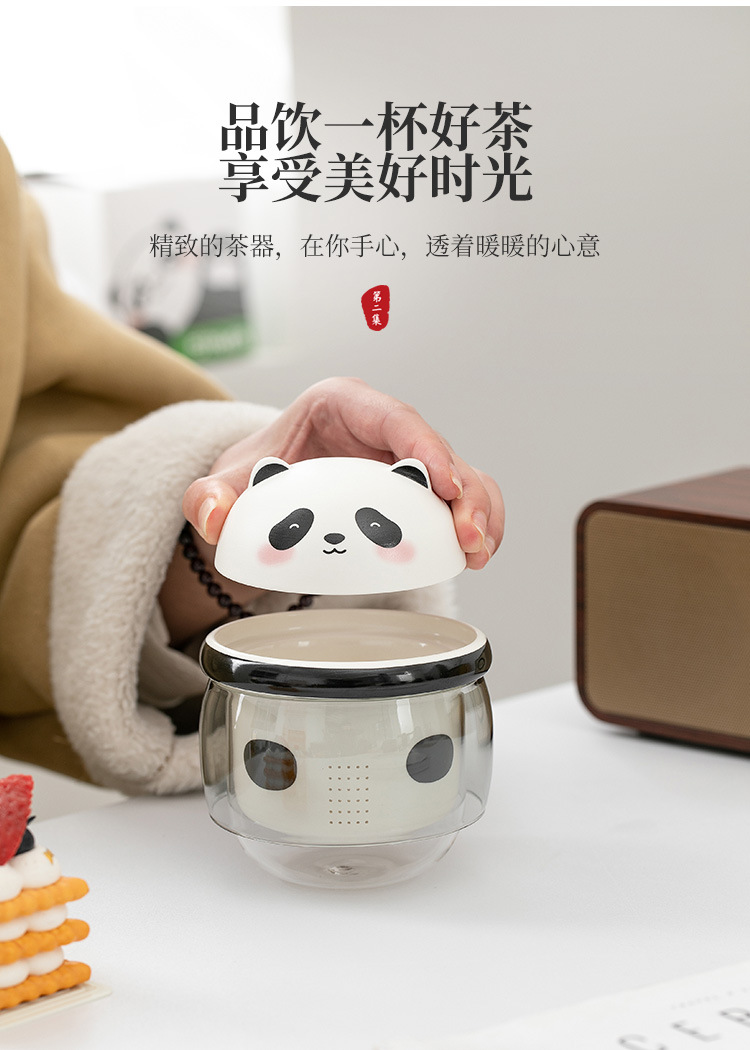 - Cốc pha trà gốm sứ gấu trúc cốc văn phòng sáng tạo có nắp cốc tách trà có sẵn trong kho
