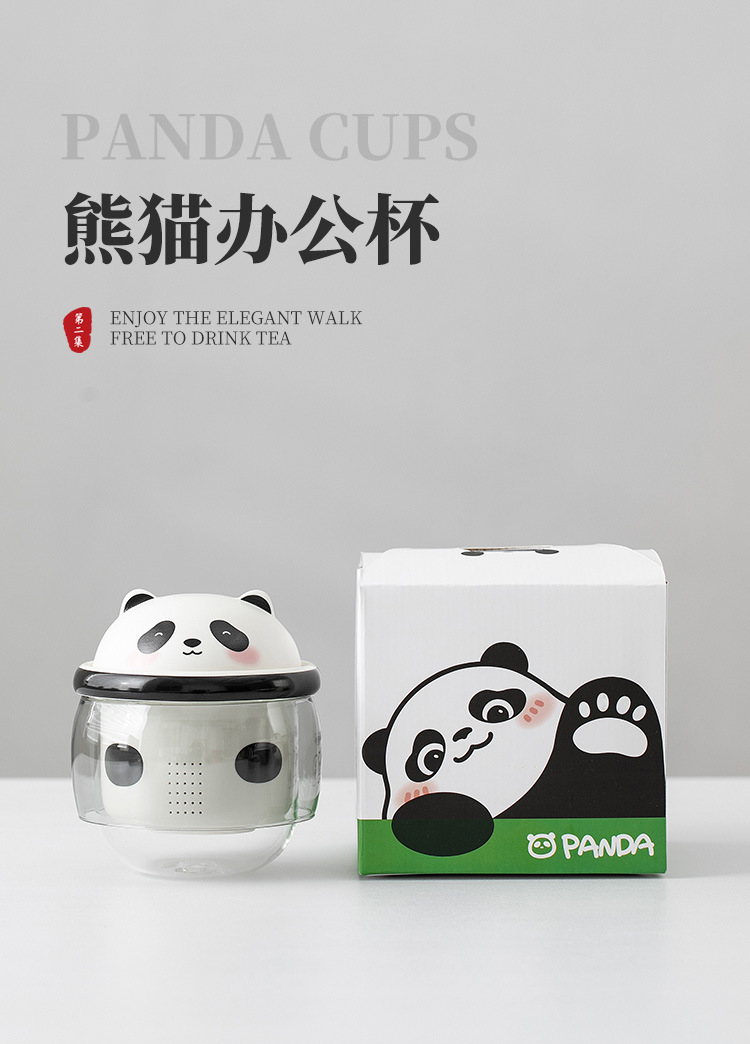 Cốc pha trà gốm sứ gấu trúc cốc văn phòng sáng tạo có nắp cốc tách trà có sẵn trong kho