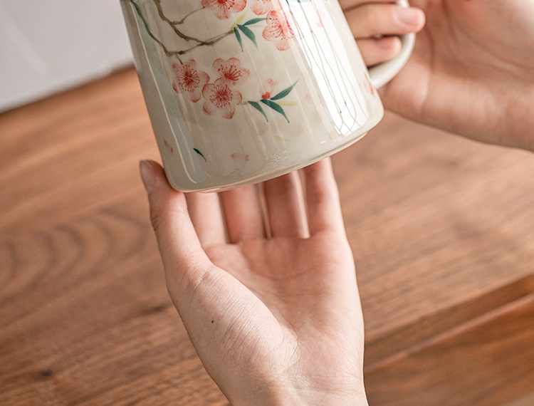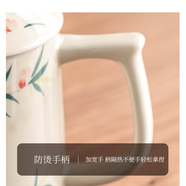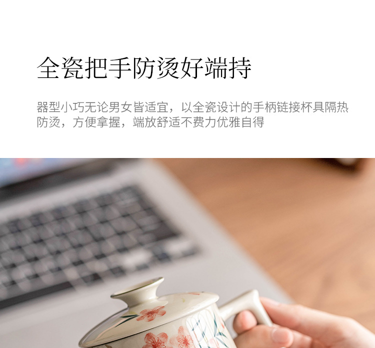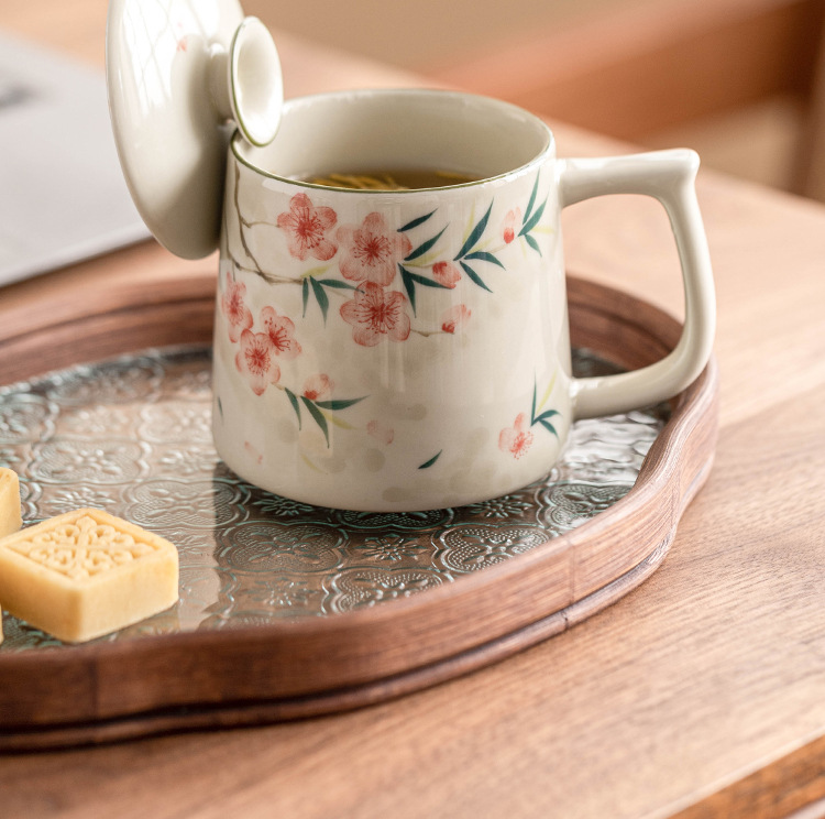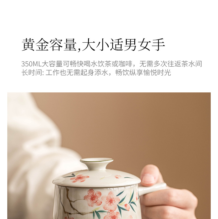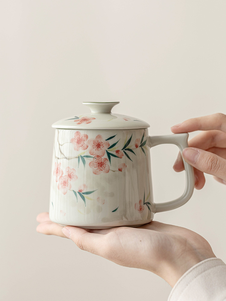 Cốc pha trà gốm sứ gia dụng vẽ tay có nắp cốc pha trà tách trà cốc văn phòng cao cấp tinh tế cốc nước