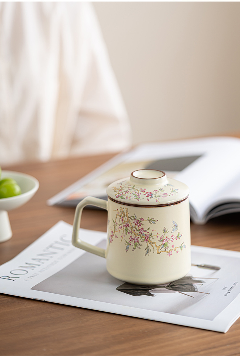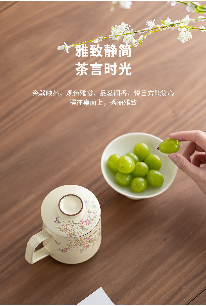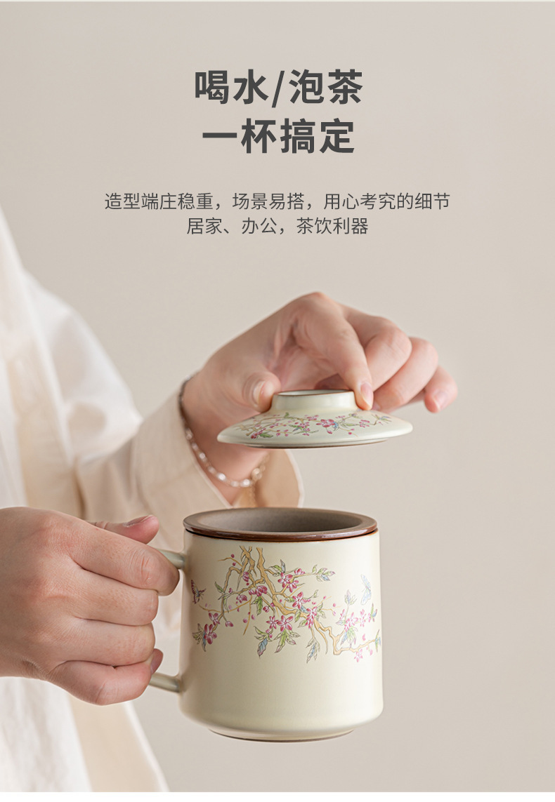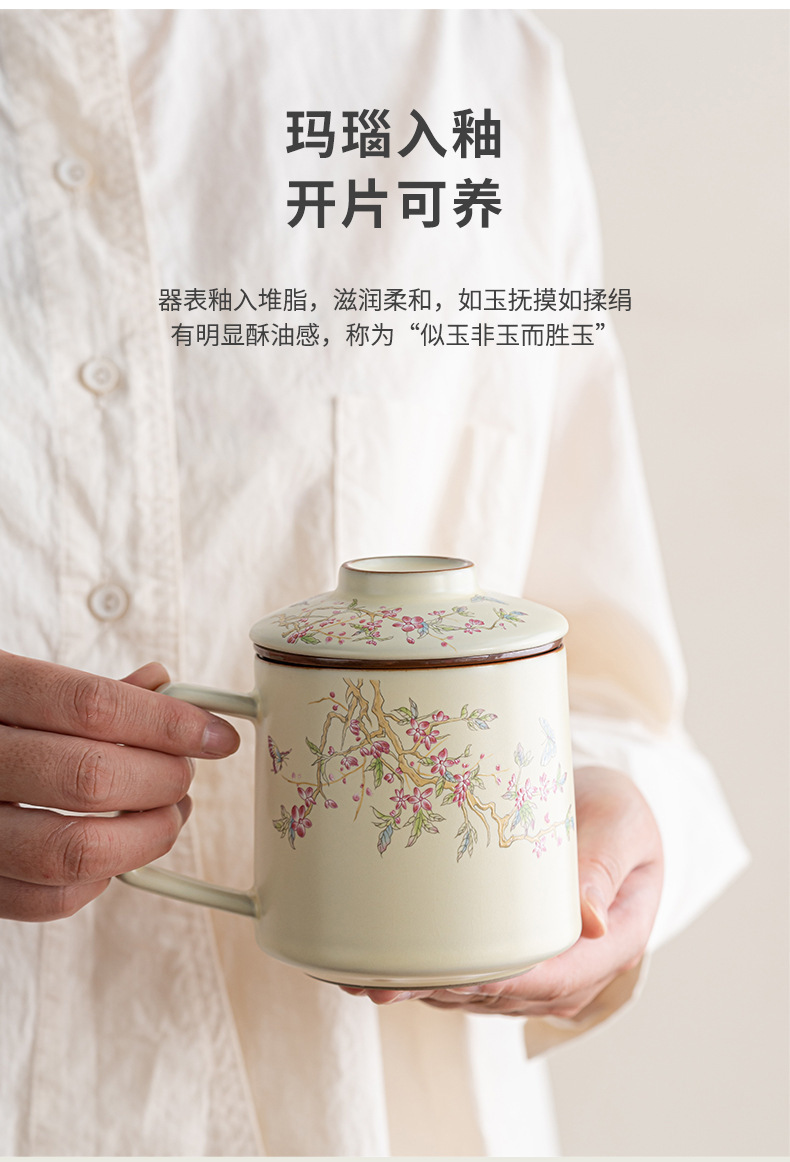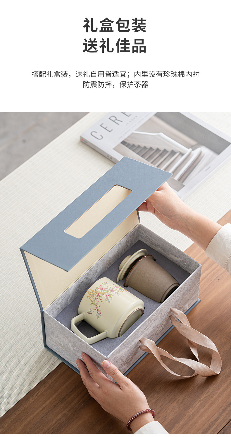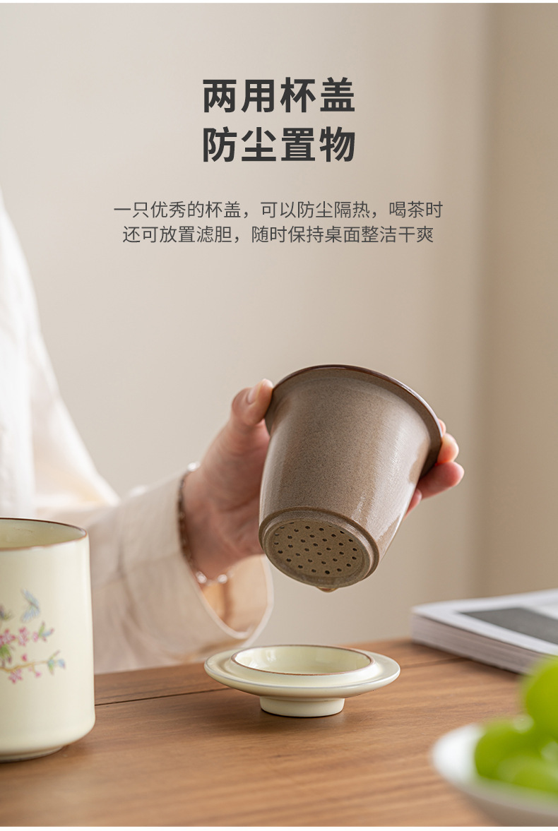 - Cốc pha trà lọc gốm sứ Ru Kiln Cốc pha trà tách trà có nắp làm quà lưu niệm doanh nghiệp