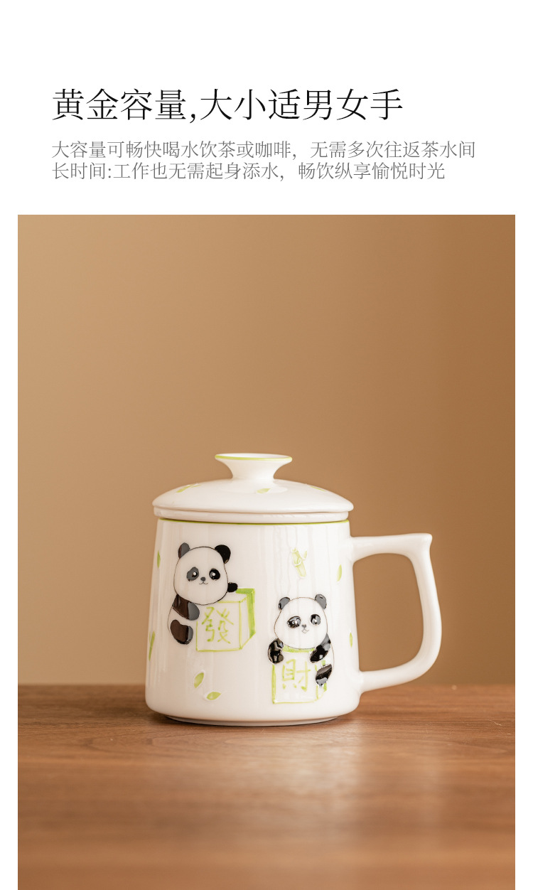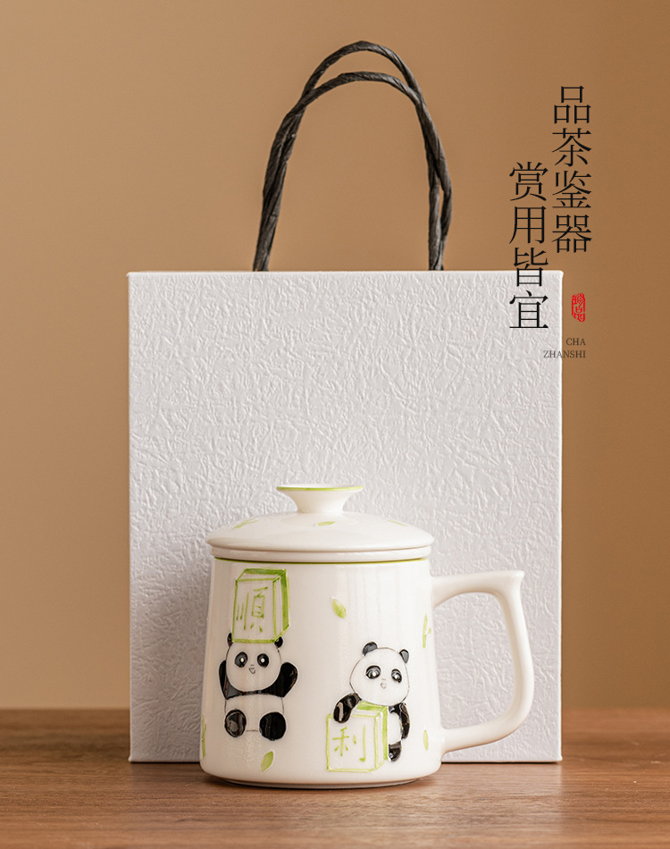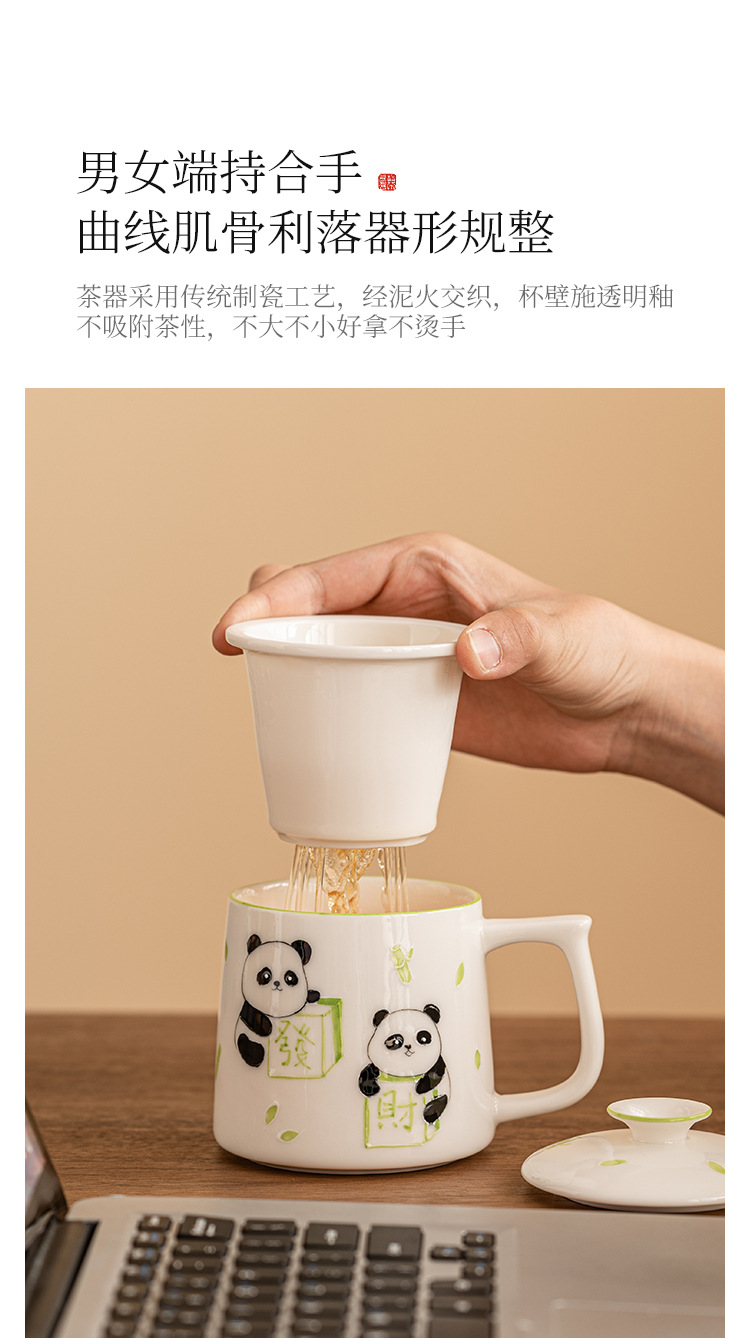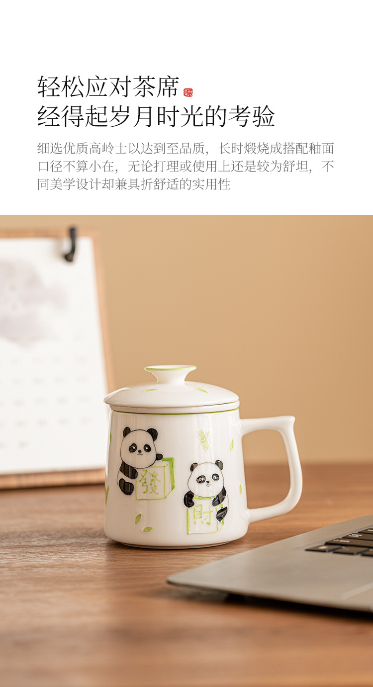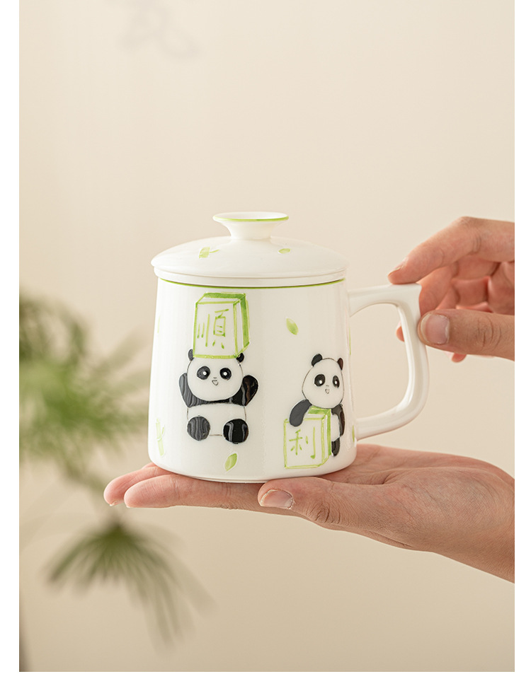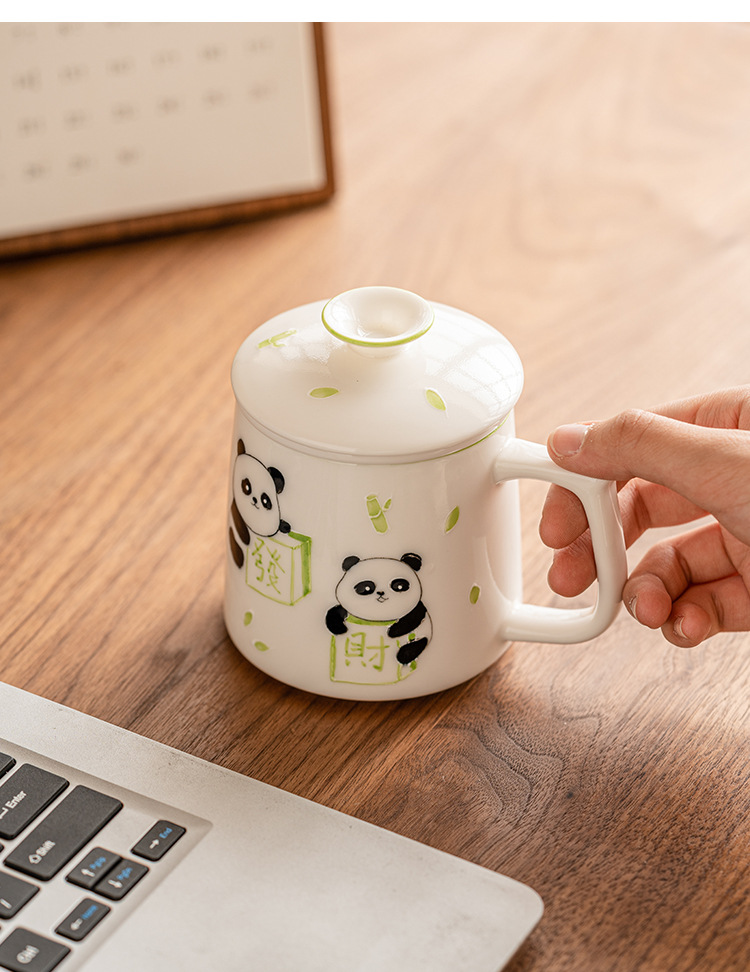 Cốc pha trà mạt chược gấu trúc vẽ tay cốc văn phòng tinh tế cao cấp cốc gốm sứ cốc tách nước trà cốc có lót