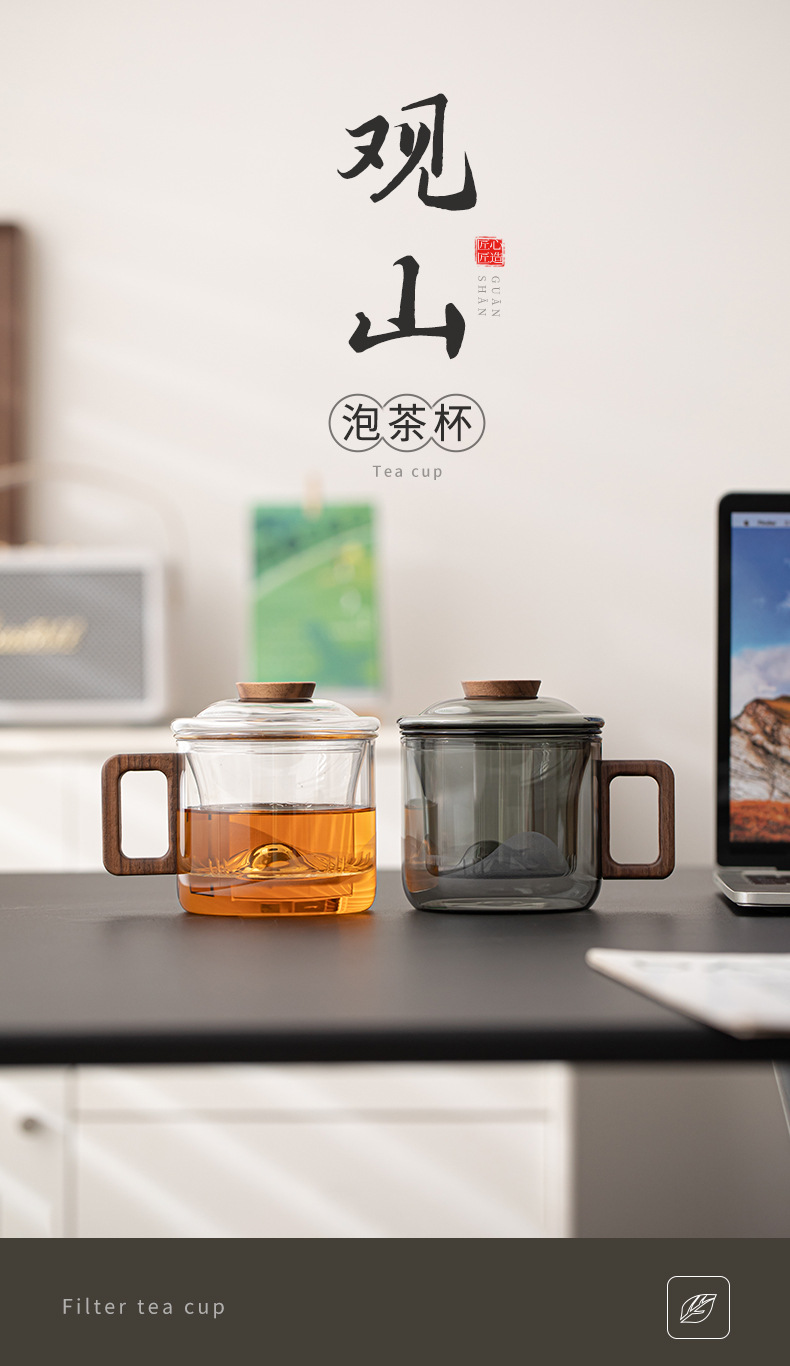 Cốc pha trà núi ngắm cảnh tối giản hiện đại cốc nước thủy tinh borosilicate cốc nước văn phòng gia dụng cốc cốc cốc cốc tách nước trà