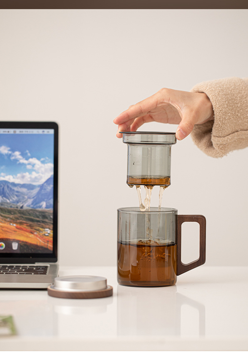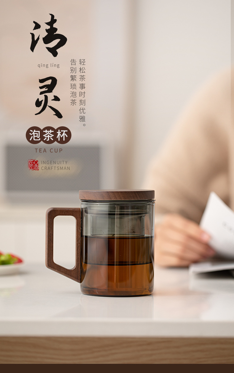 Cốc pha trà Qingling cốc thủy tinh gia dụng đơn giản cốc cá nhân cốc nước có nắp cốc văn phòng cốc cốc cốc lọc trà