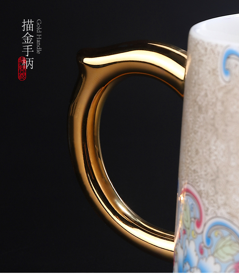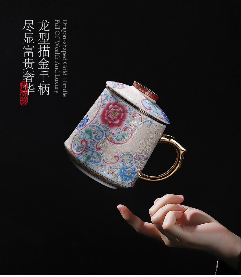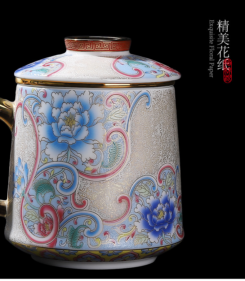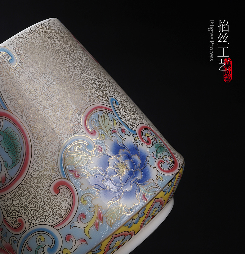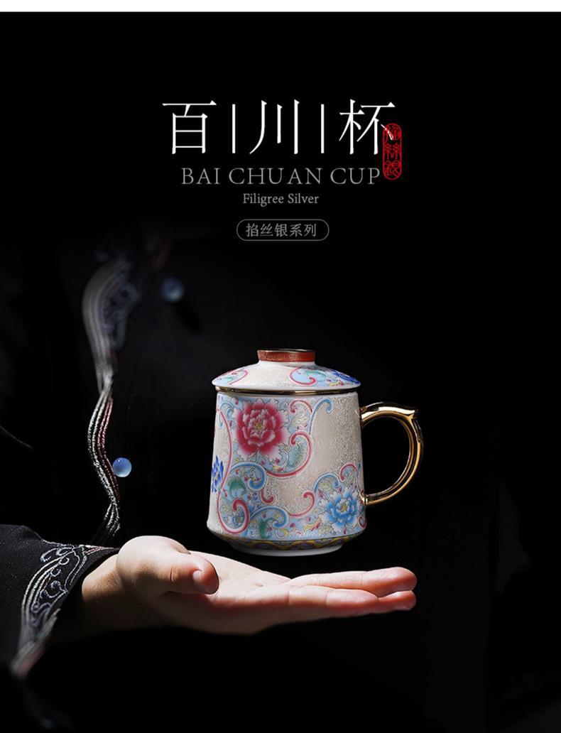 Cốc pha trà tráng men cloisonné bạc nguyên chất cao cấp tách trà gốm sứ chuyên dụng có nắp cốc văn phòng