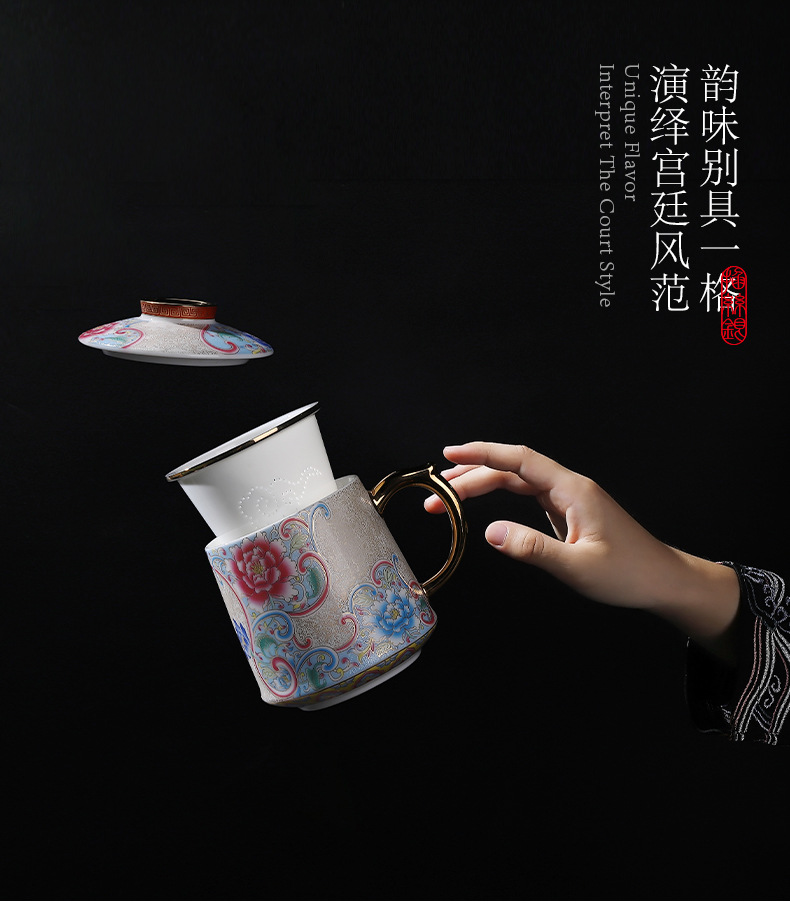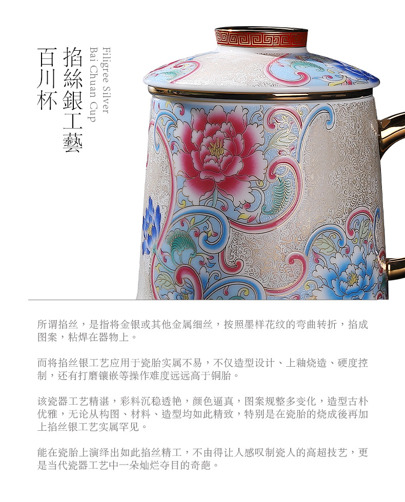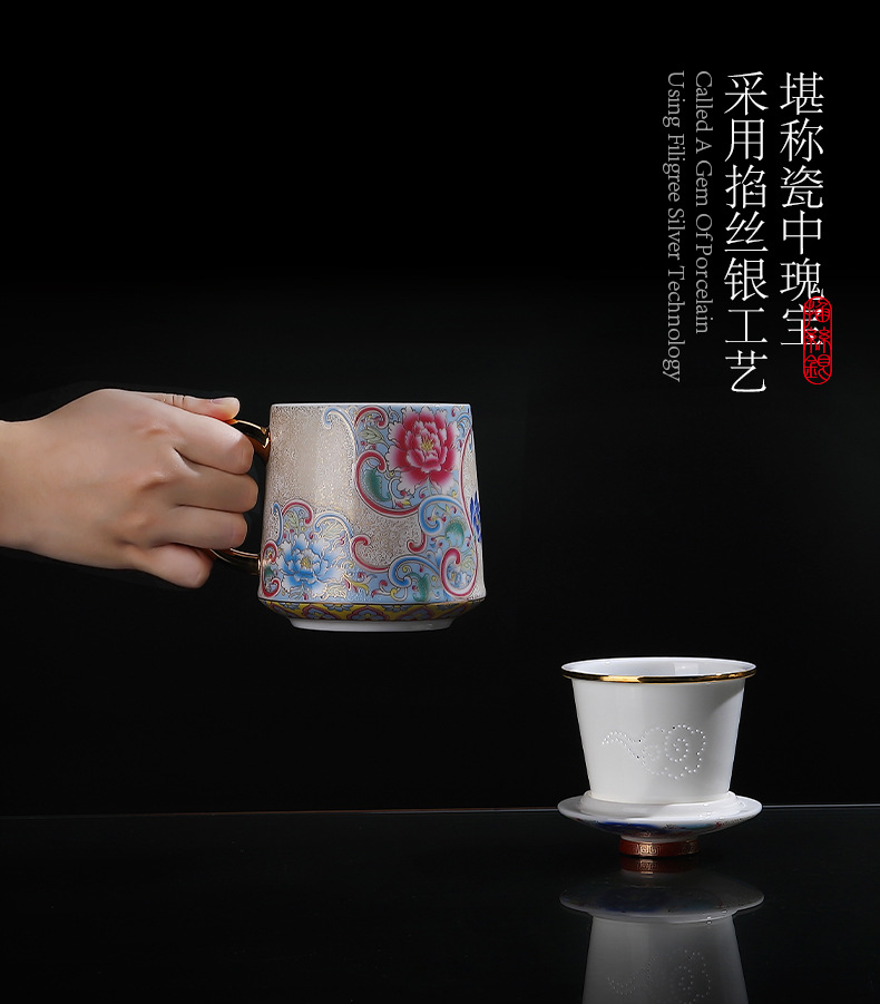 - Cốc pha trà tráng men cloisonné bạc nguyên chất cao cấp tách trà gốm sứ chuyên dụng có nắp cốc văn phòng