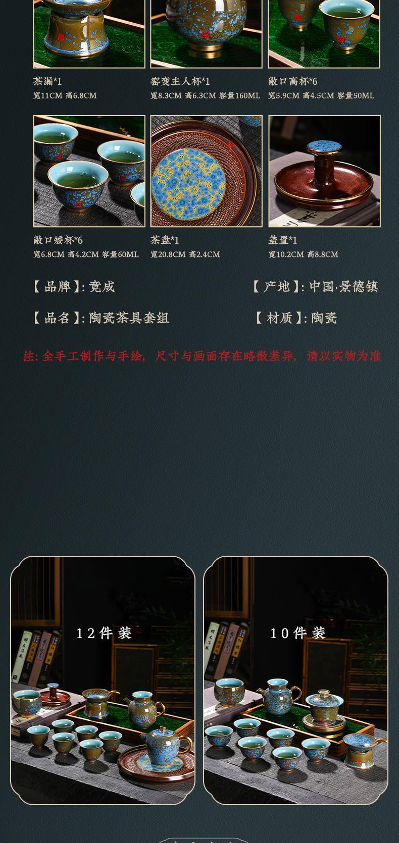 - Cốc pha trà tráng men màu thay đổi dao của Zhang Bộ đồ trà Kung Fu Trung Quốc làm quà tặng sang trọng bằng gốm sứ cao cấp gia dụng