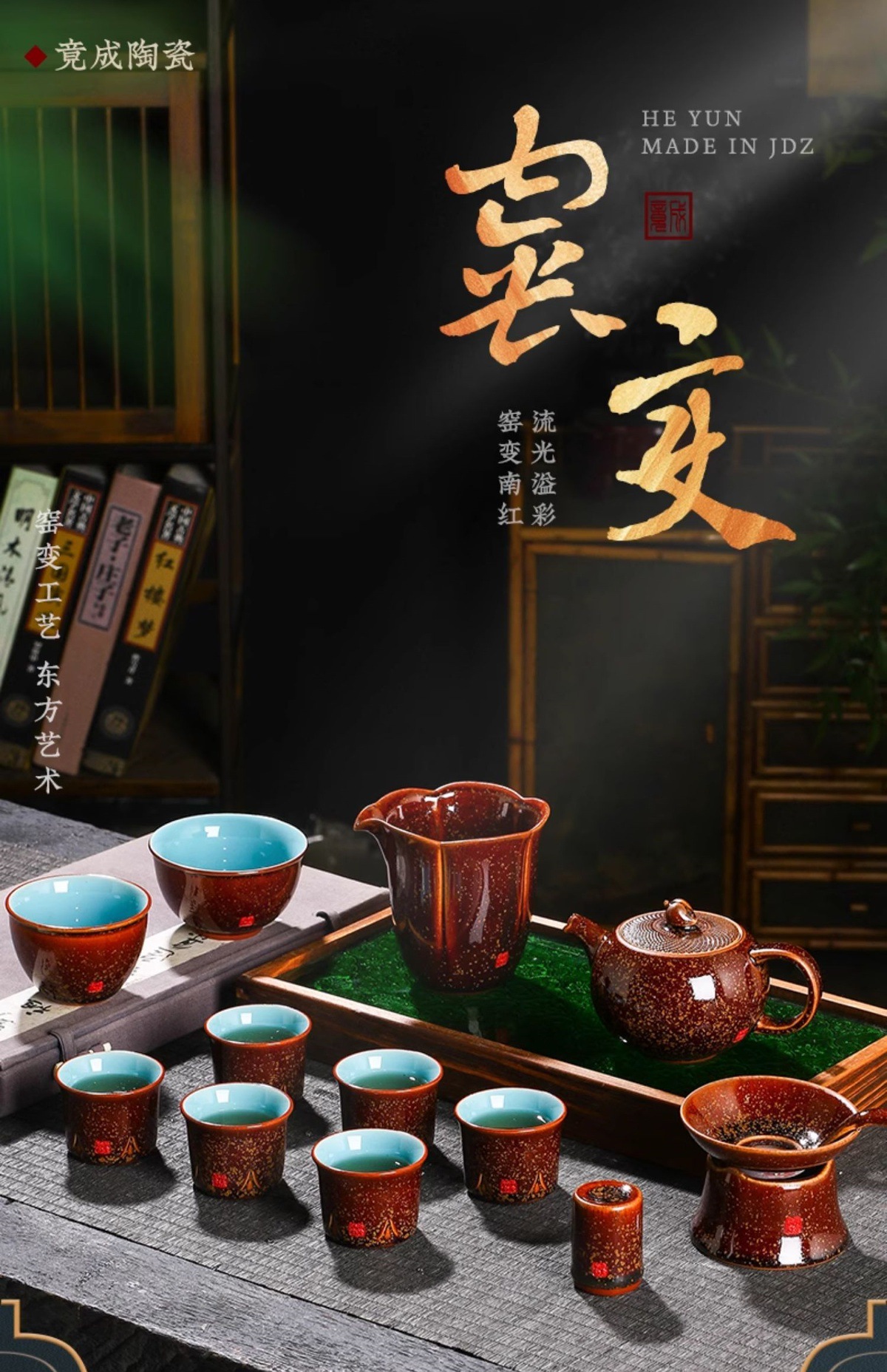 Cốc pha trà tráng men màu thay đổi dao của Zhang Bộ trà Kung Fu Trung Quốc gốm sứ cao cấp gia dụng Jun Yu Nan Hong