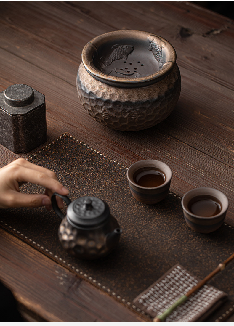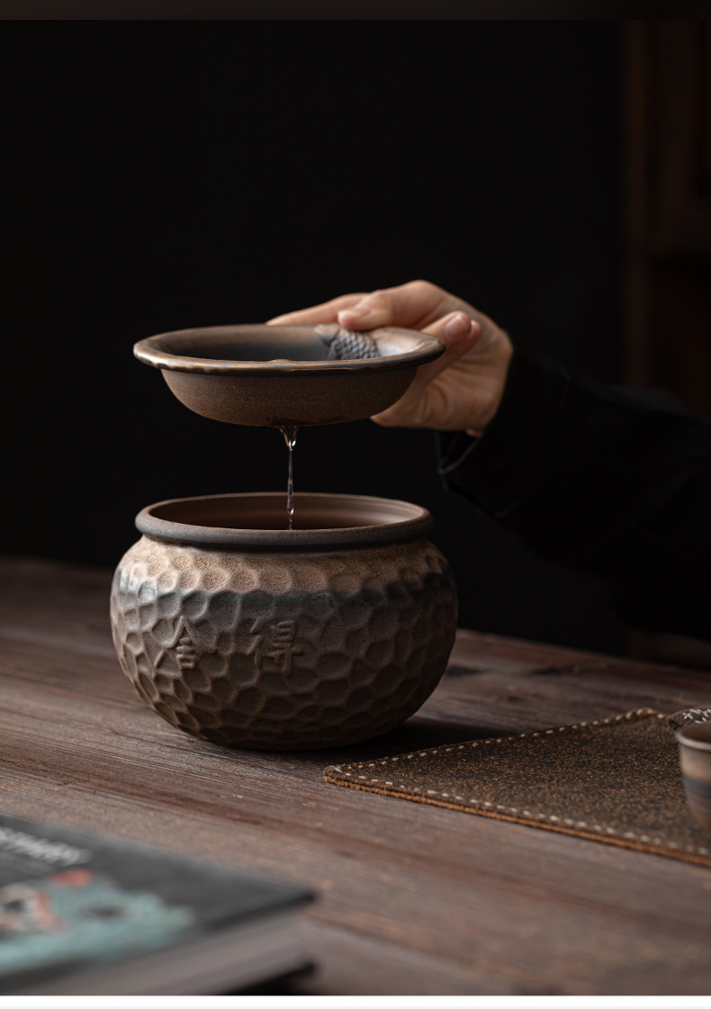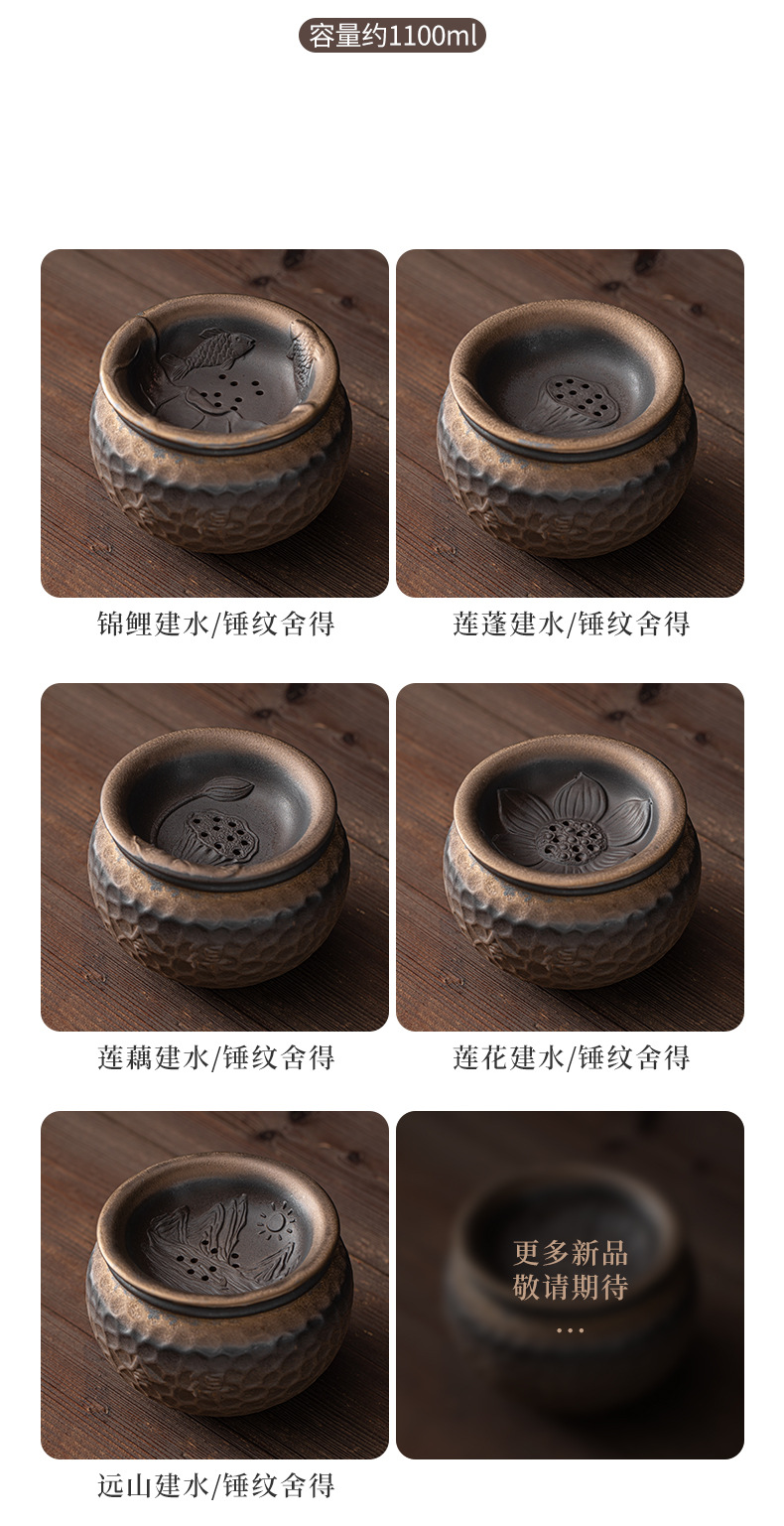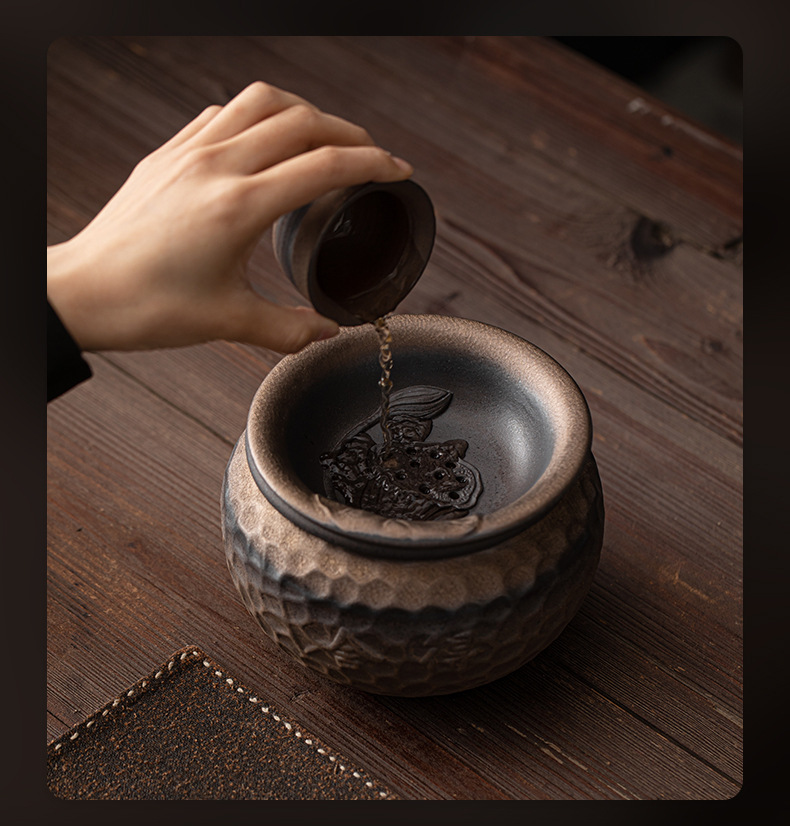 Cốc rửa trà Jianshui tráng men mạ vàng nung cổ xưa, thùng đựng bã trà lớn, phụ kiện bộ trà gốm thô cổ điển, thùng trà