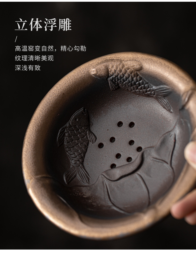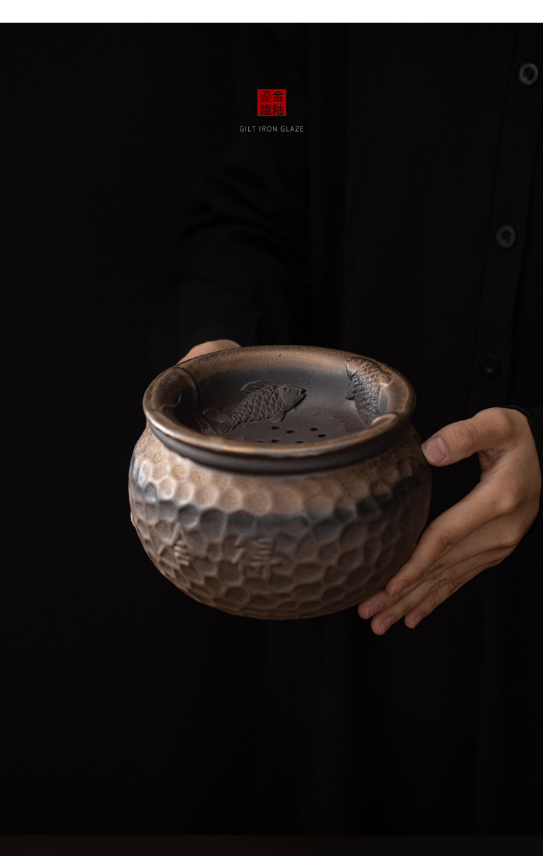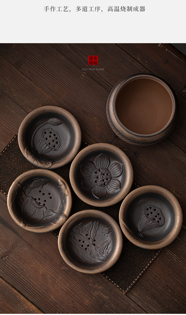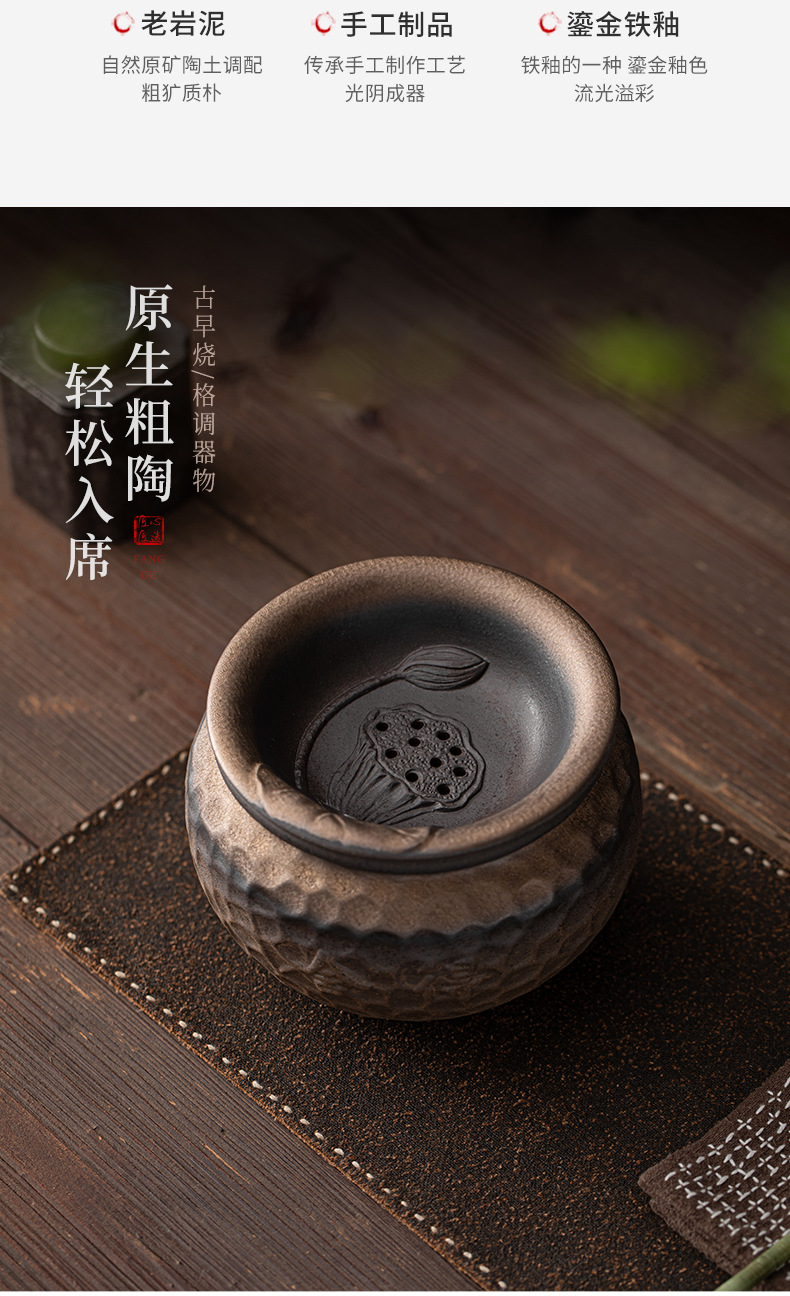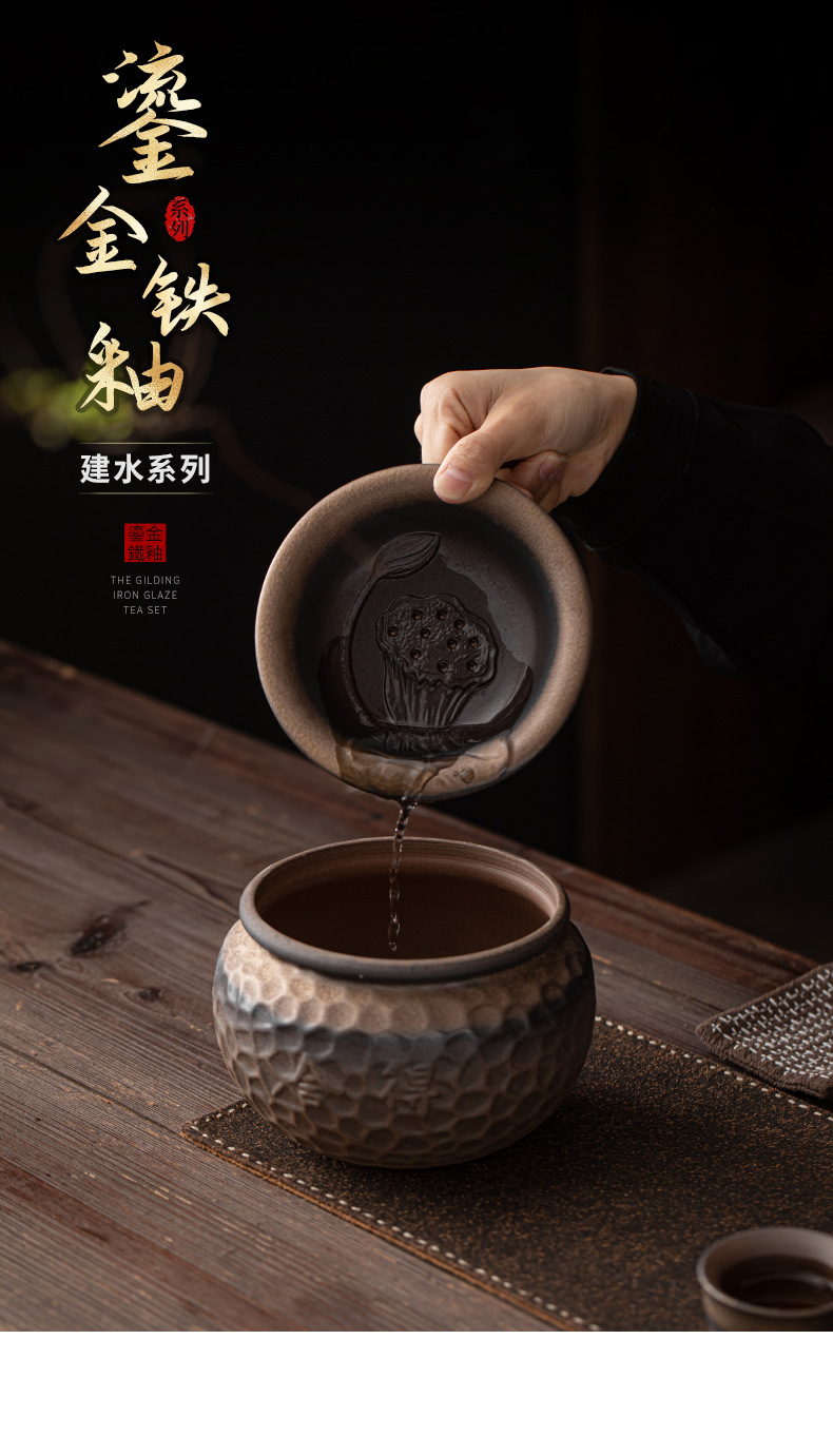 - Cốc rửa trà Jianshui tráng men mạ vàng nung cổ xưa, thùng đựng bã trà lớn, phụ kiện bộ trà gốm thô cổ điển, thùng trà