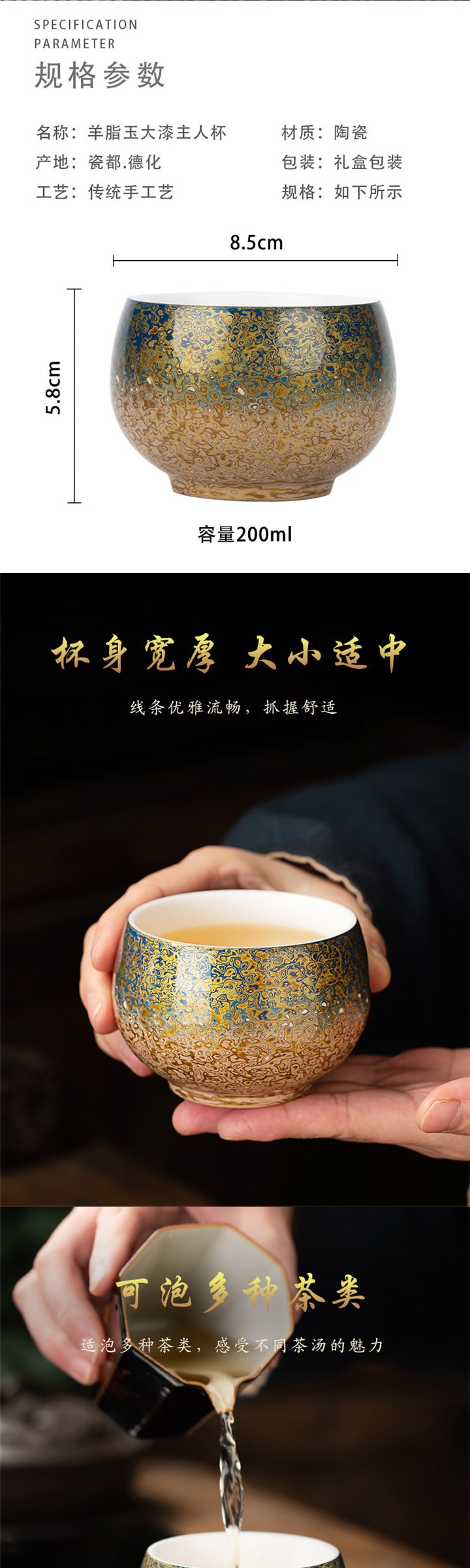 Cốc sơn mài sứ trắng Dehua, bộ trà cao cấp, cốc chủ, cốc đơn, cốc đôi, cốc trà ngọc mỡ cừu, đồ sơn mài gradient