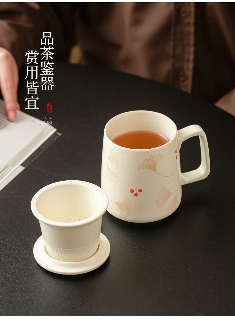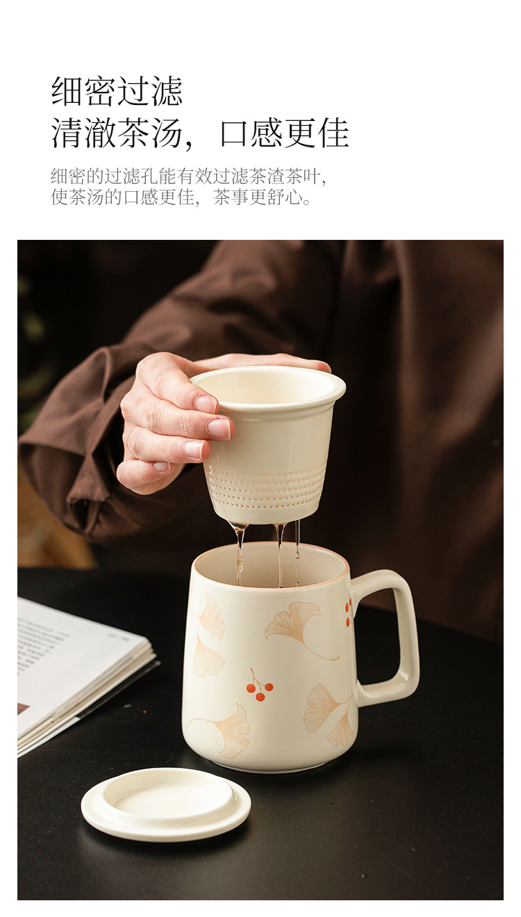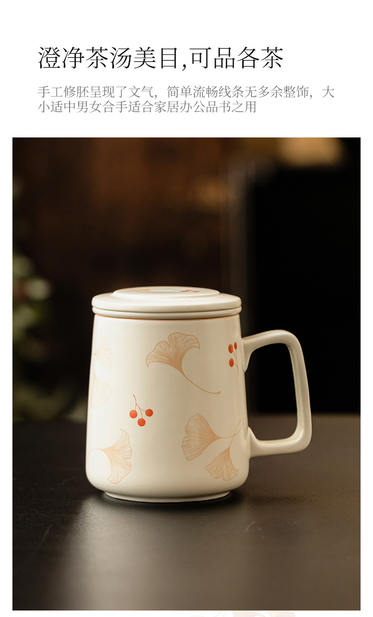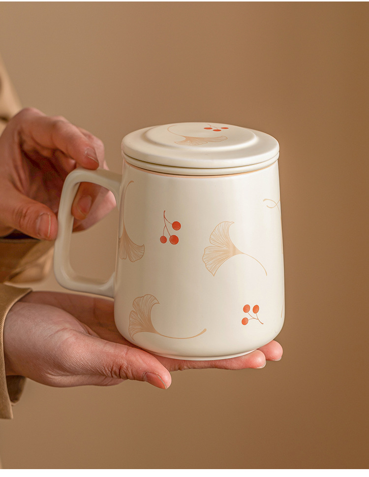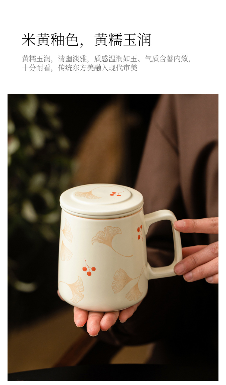 Cốc sứ bạch quả màu be cốc văn phòng cốc nước gốm cốc pha trà cốc tách nước cốc cốc lớn gia dụng có nắp