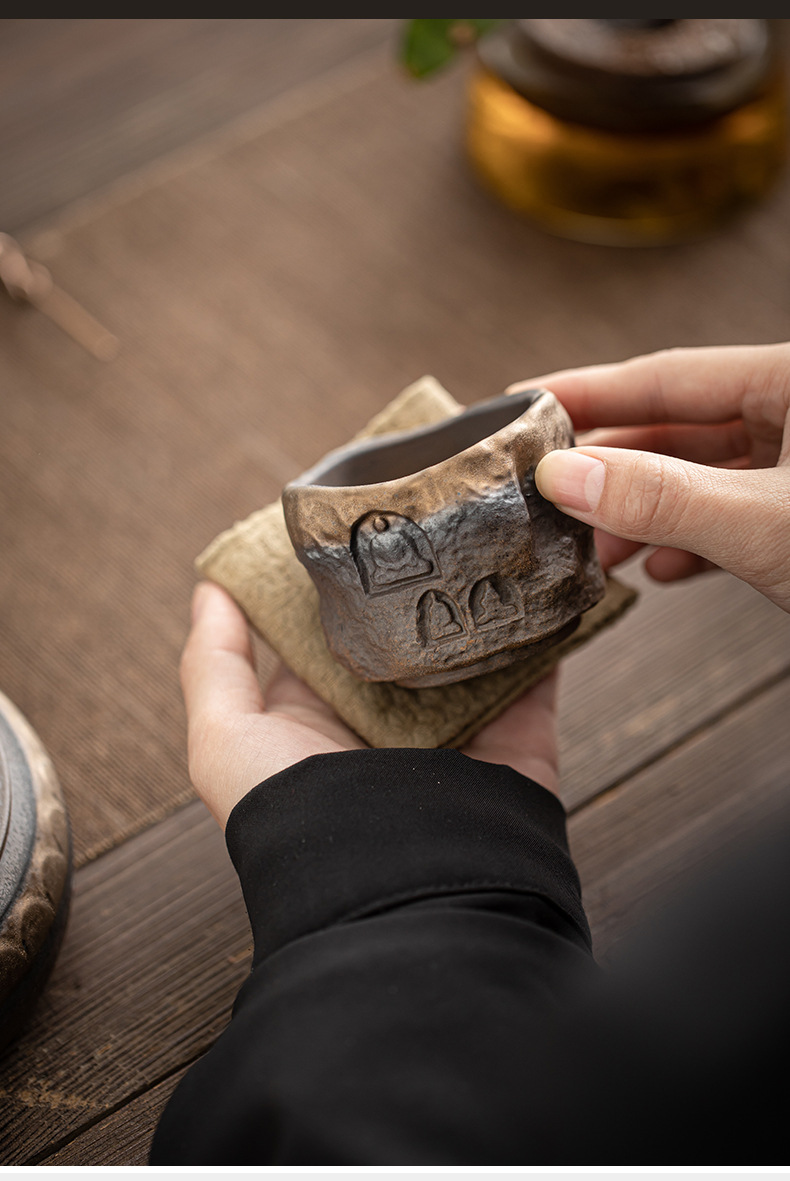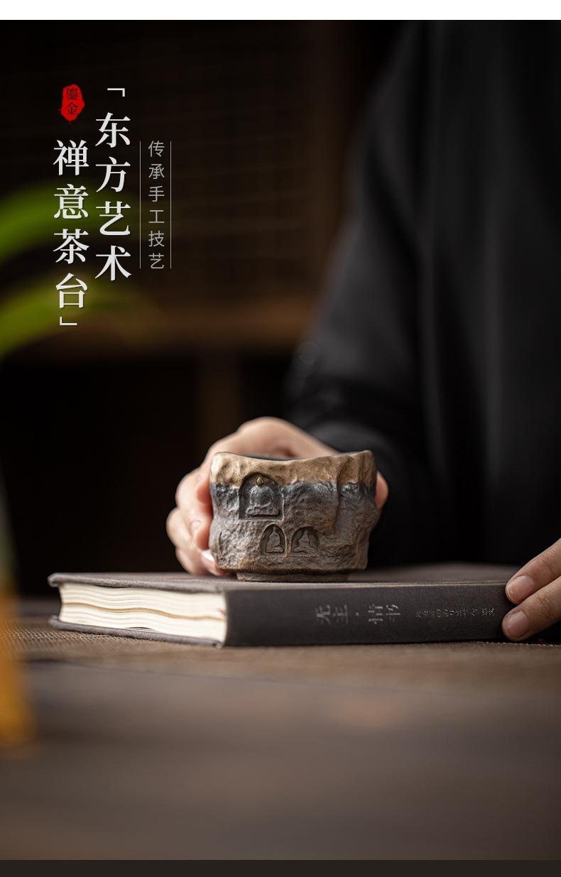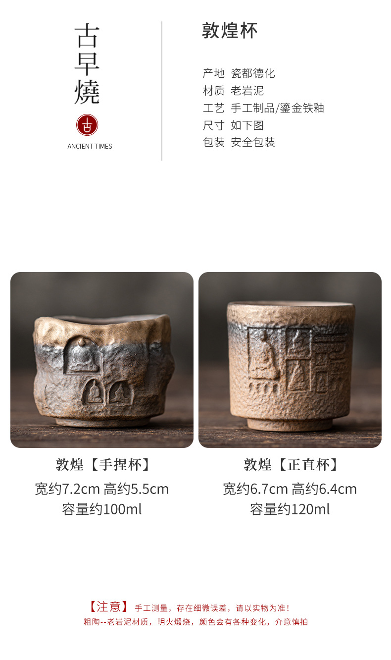 Cốc sứ Đôn Hoàng tráng men mạ vàng cổ điển cốc chủ nhân cốc trà gốm sứ thủ công cổ xưa cốc nhỏ bộ trà Kung Fu