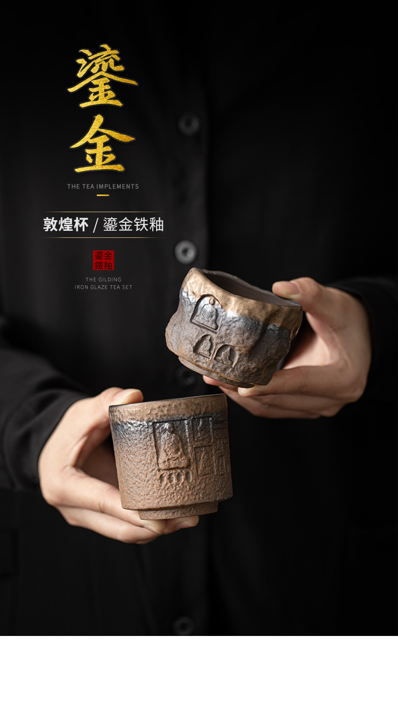 - Cốc sứ Đôn Hoàng tráng men mạ vàng cổ điển cốc chủ nhân cốc trà gốm sứ thủ công cổ xưa cốc nhỏ bộ trà Kung Fu
