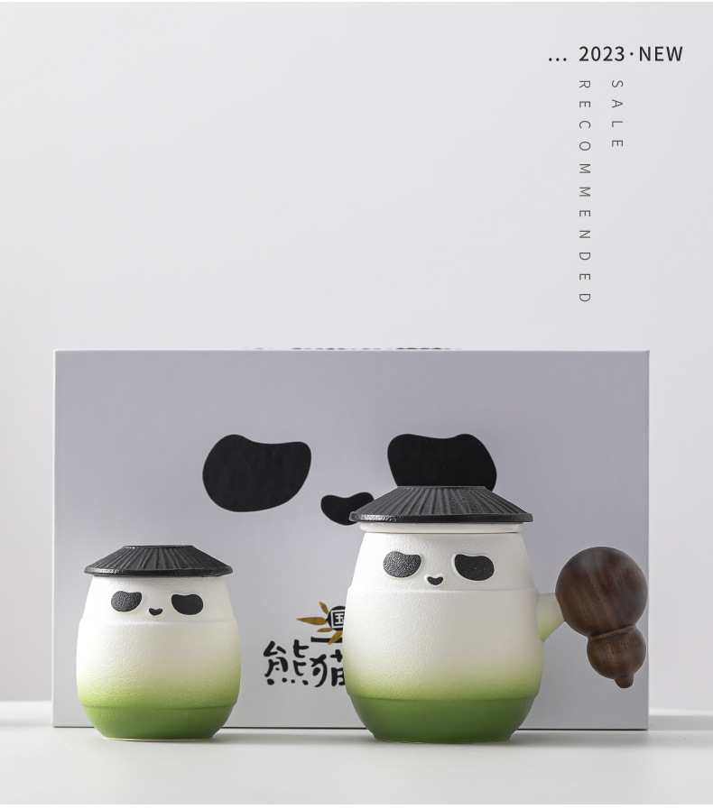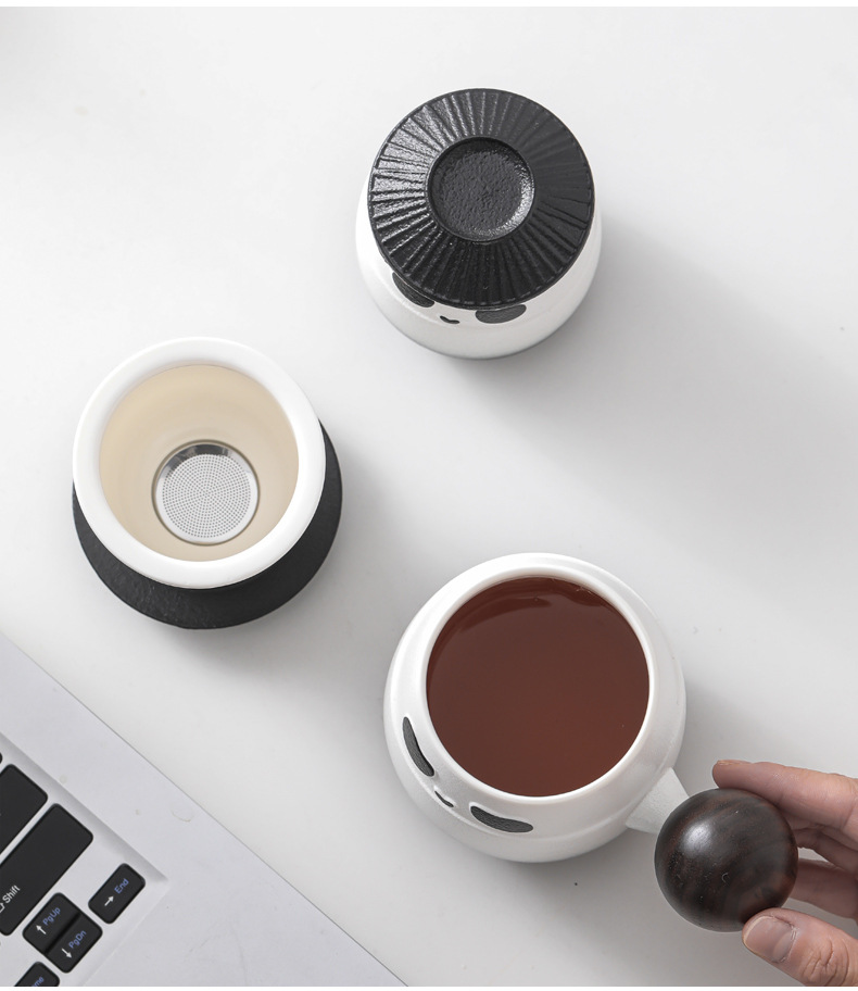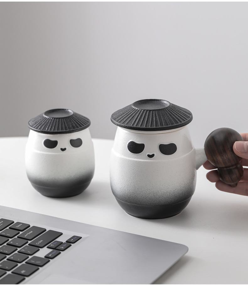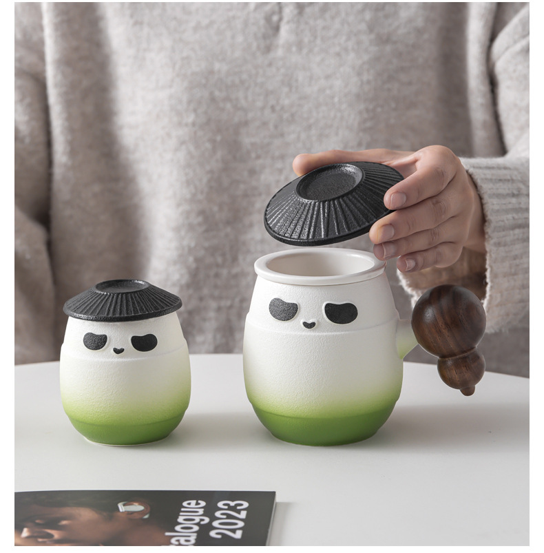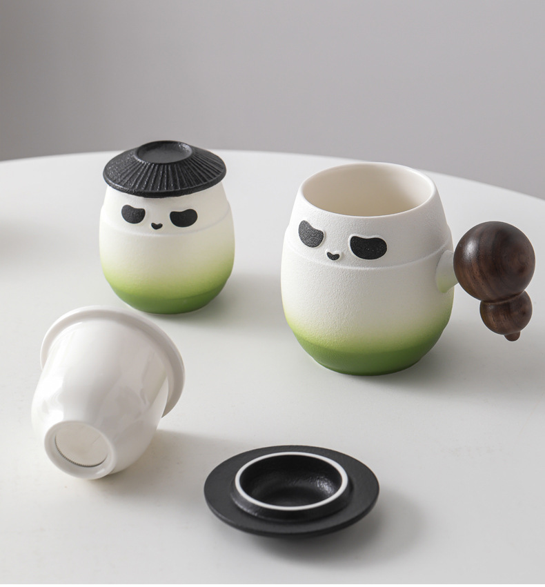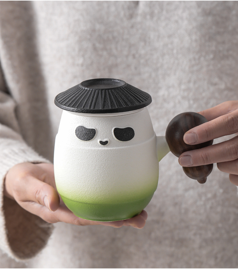 - Cốc sứ gấu trúc cốc lọc cốc nước tách trà cá nhân văn phòng có nắp cốc pha trà logo