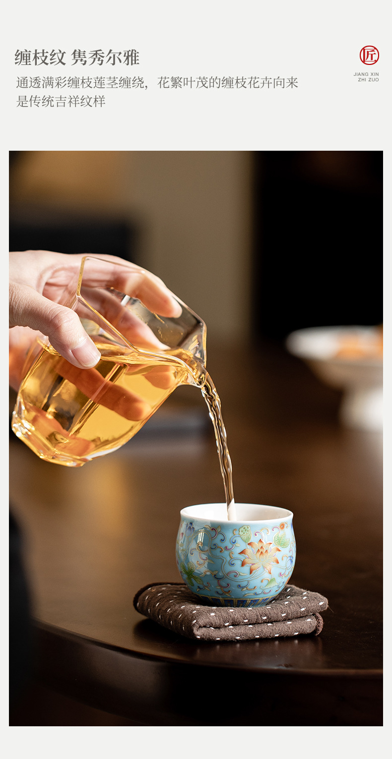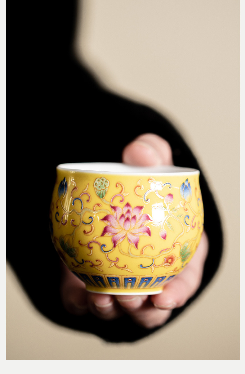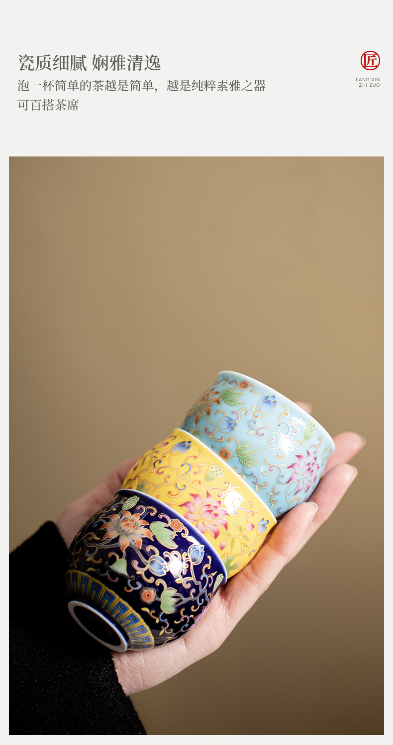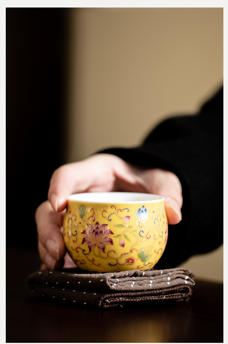 Cốc sứ hoa sen tráng men, cốc uống trà, cốc cá nhân cổ điển kiểu Trung Quốc, cốc đựng trà Kung Fu, cốc chủ nhân