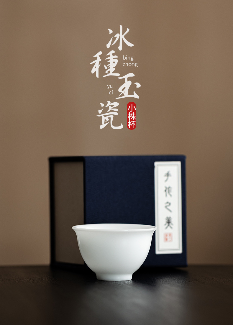 Cốc sứ ngọc bích loại băng, tách trà sứ trắng, tách trà nhỏ, cốc chủ nhân, Bộ trà gốm sứ thủ công, hộp quà