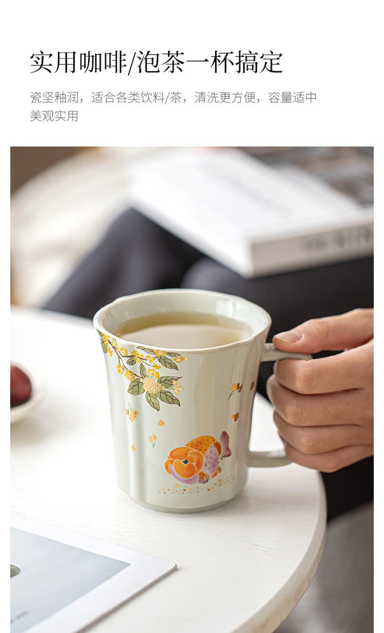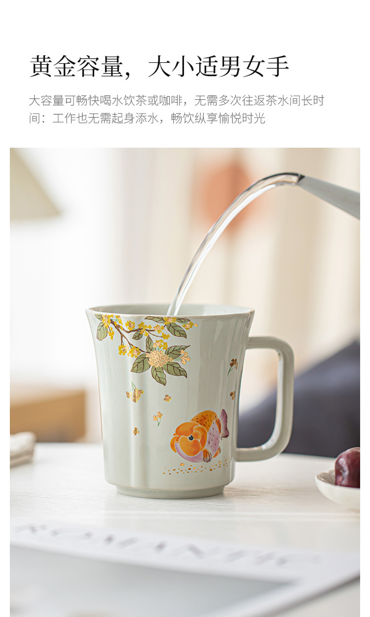 Cốc sứ osmanthus cá vàng Song Lan cốc cà phê nhà cốc trà có tay cầm văn phòng tinh tế cốc cốc nước
