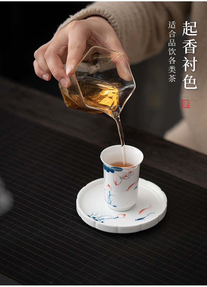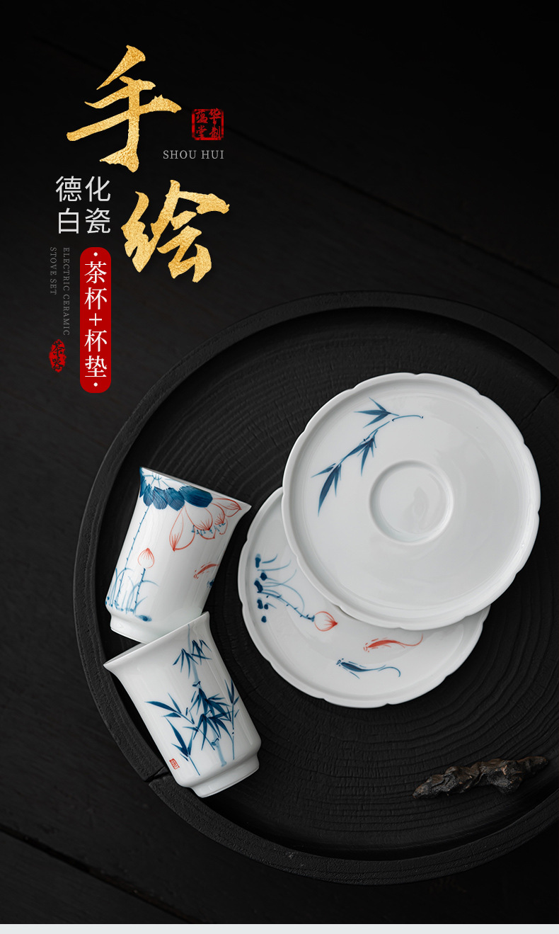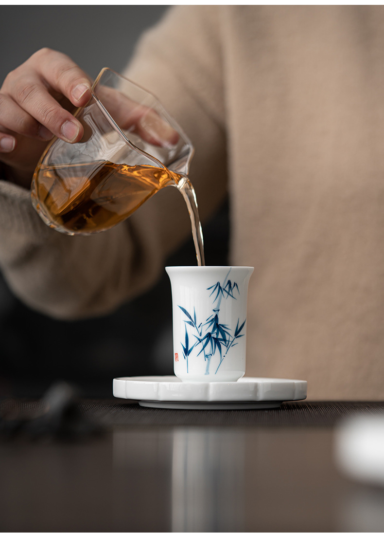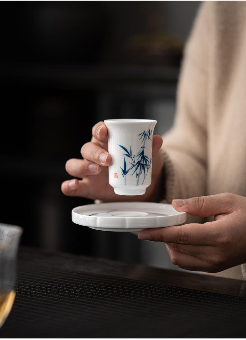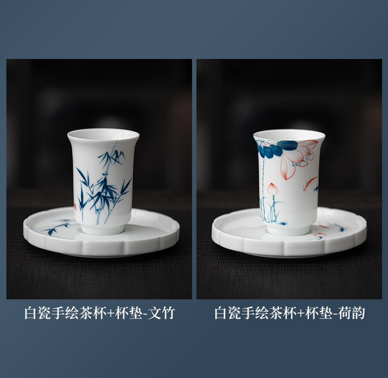 Cốc sứ trắng hoa sen vẽ tay, cốc trà, Cốc thơm, cốc trà nhỏ công phu gốm sứ Wenzhu, cốc đơn màu xanh và trắng, cốc chủ nhân