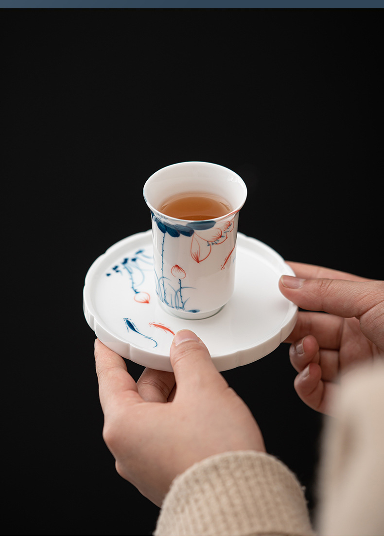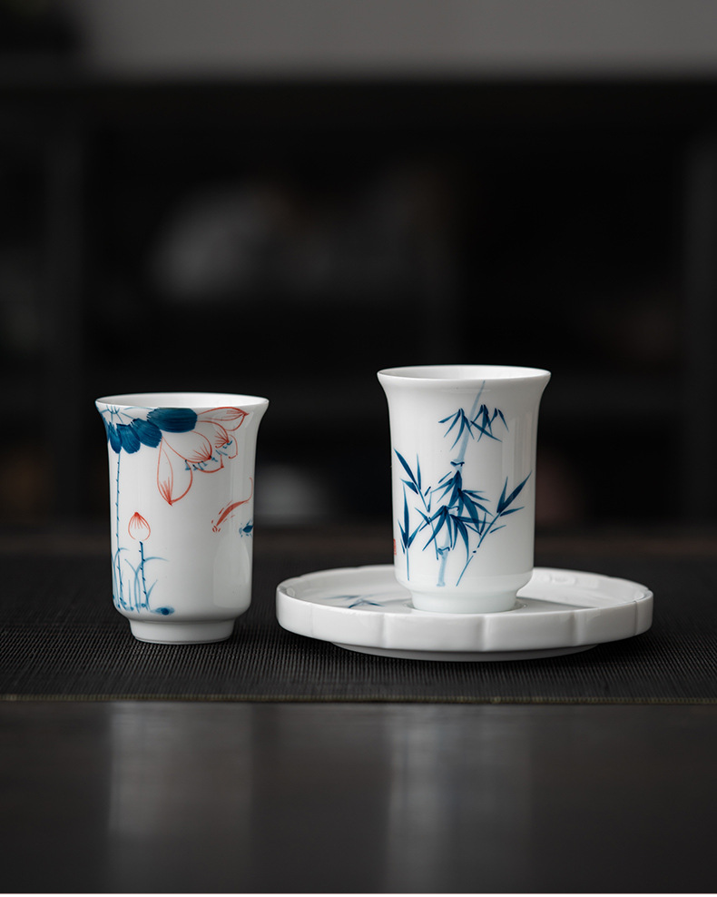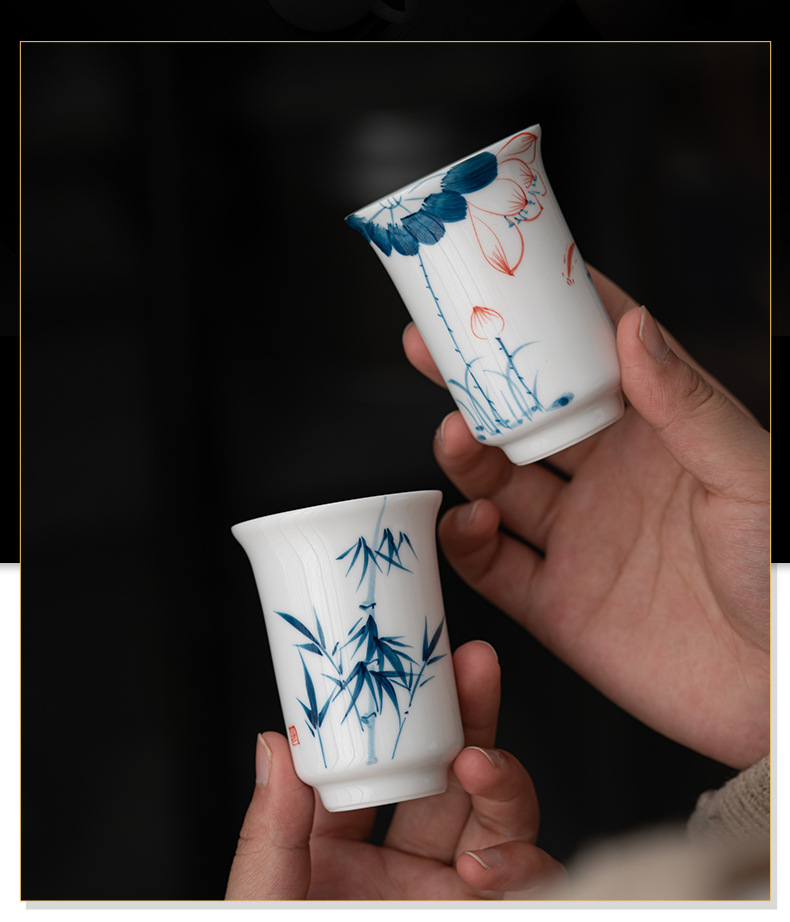 - Cốc sứ trắng hoa sen vẽ tay, cốc trà, Cốc thơm, cốc trà nhỏ công phu gốm sứ Wenzhu, cốc đơn màu xanh và trắng, cốc chủ nhân