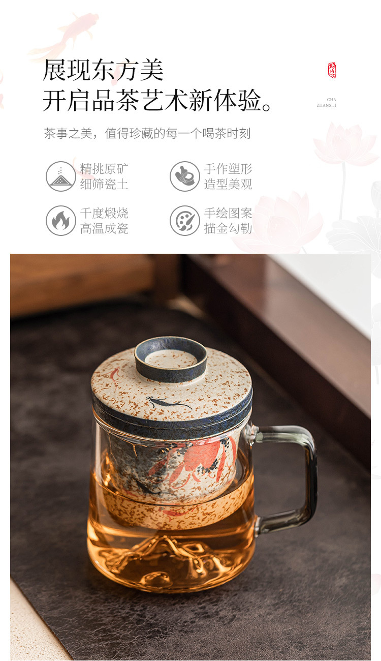 - Cốc tách nước trà đen đá lửa trắng xanh, cốc văn phòng cá chép vàng Yungui, cốc uống trà, cốc cao cấp