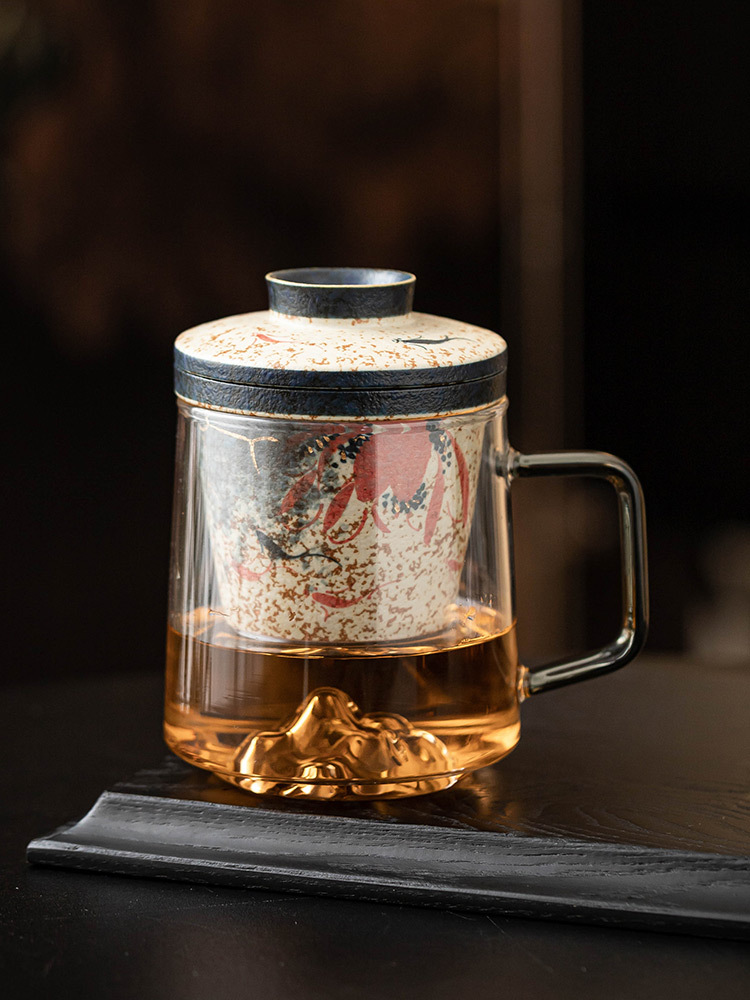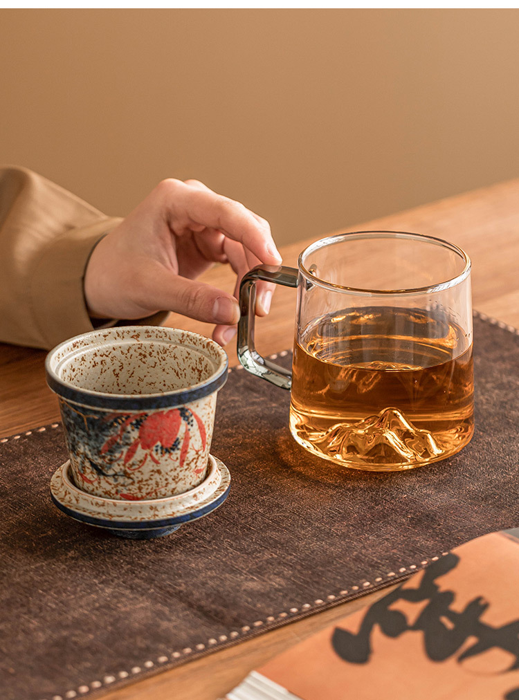 Cốc tách nước trà đen đá lửa trắng xanh, cốc văn phòng cá chép vàng Yungui, cốc uống trà, cốc cao cấp