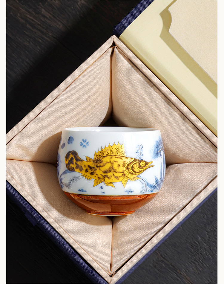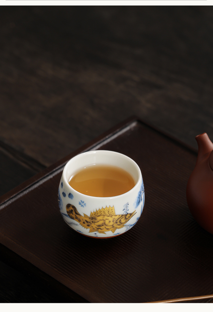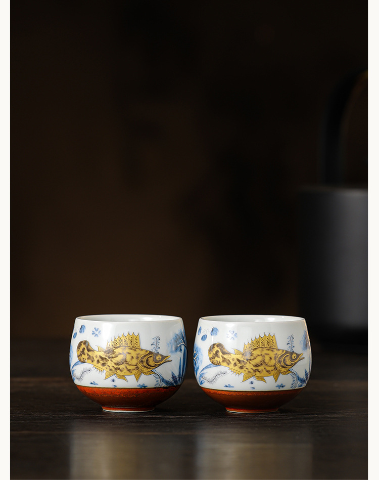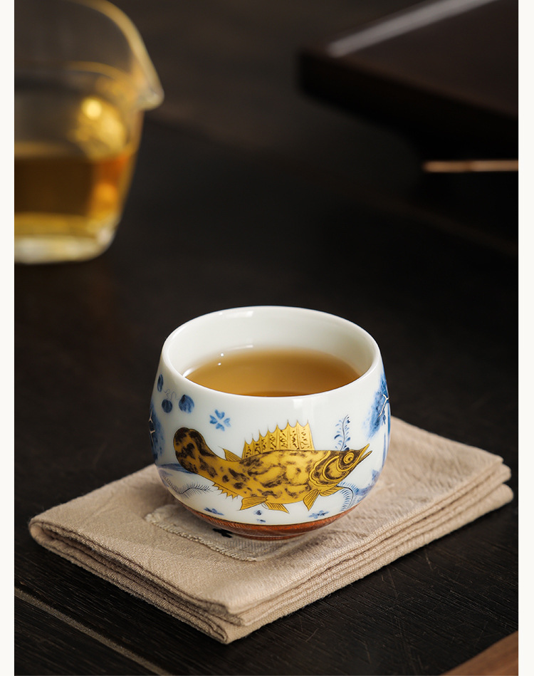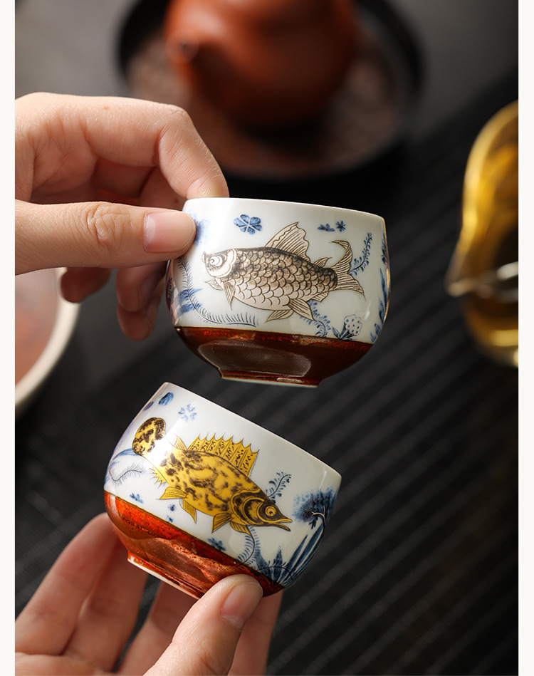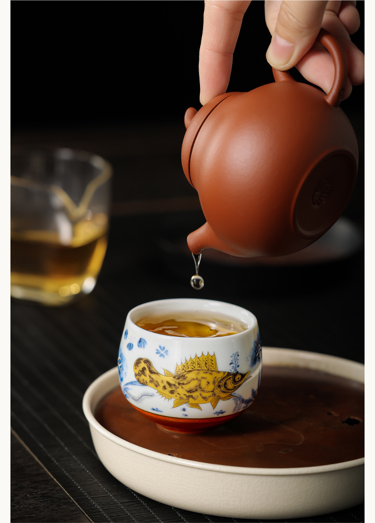 Cốc thiền hình tảo cá tráng men soda cốc trà cốc chủ nhân cốc trà cao cấp tinh tế gia dụng cốc trà bộ trà Kung Fu cốc trà