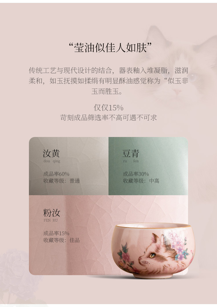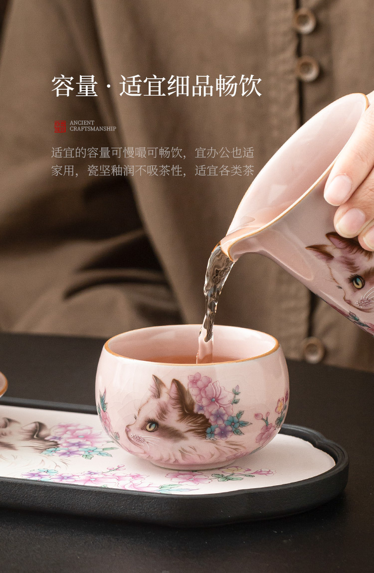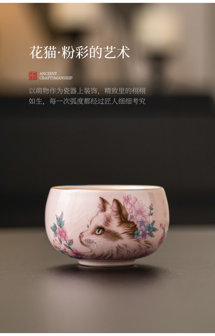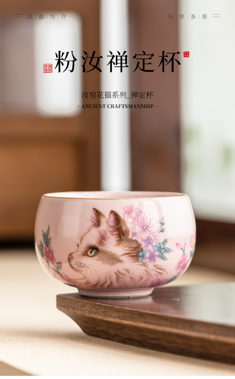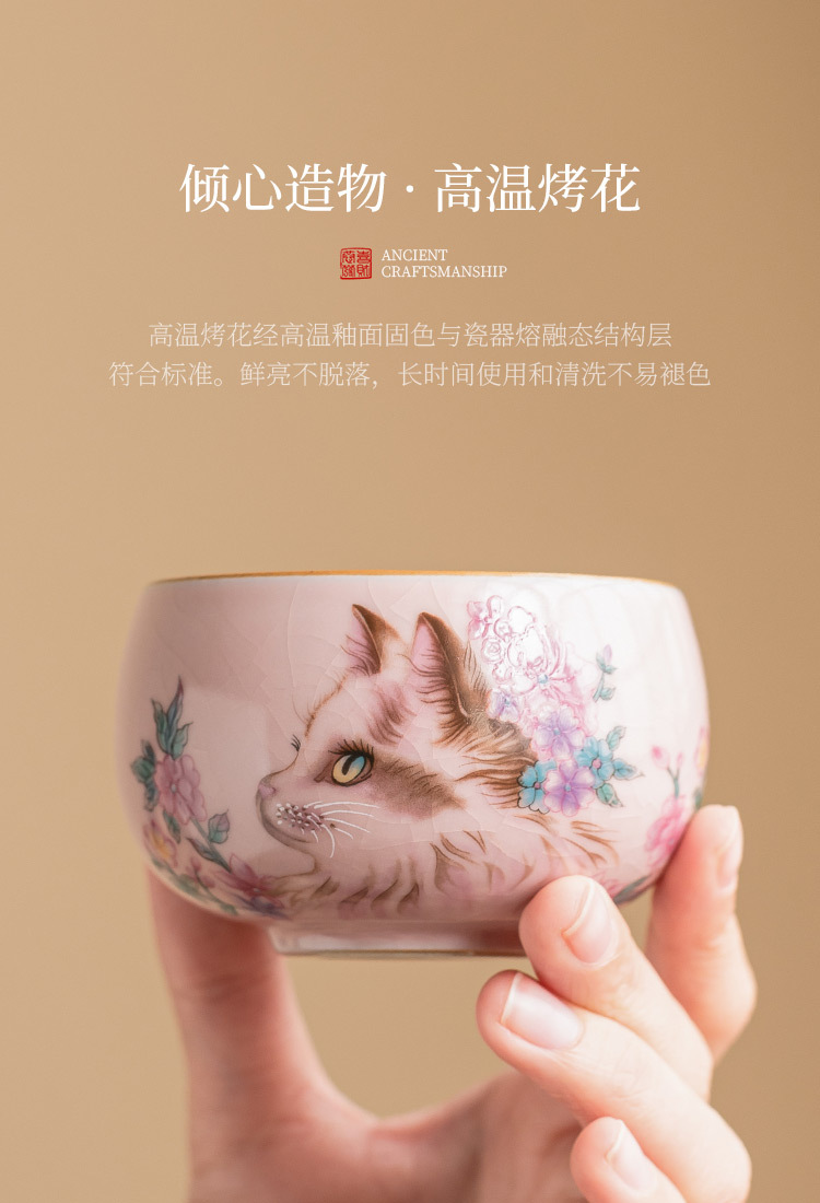 Cốc thiền mèo hoa lò Jisu Cốc trà gốm sứ có thể mở được Cốc trà gia dụng Cốc trà đơn Cốc trà cá nhân