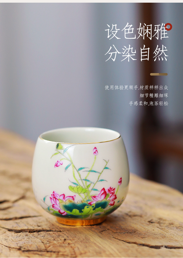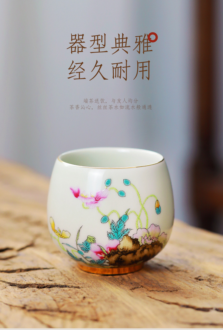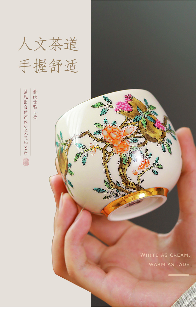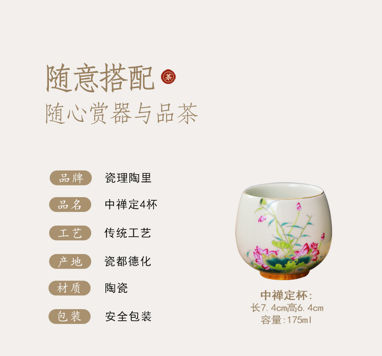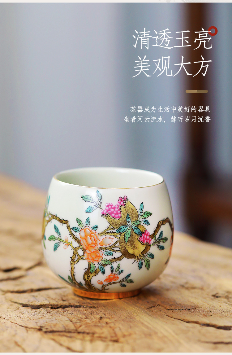 - Cốc thiền trong gốm sứ Cửu đào hoa sen lựu anh túc long trứng gia đình quốc triều pha trà chủ cốc