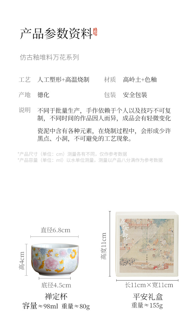 - Cốc thiền Vạn Hoa tráng men cổ cốc trà bộ trà gốm sứ Trung Quốc cốc chủ nhân cốc trà trà trà Kung Fu cốc trà đơn trà
