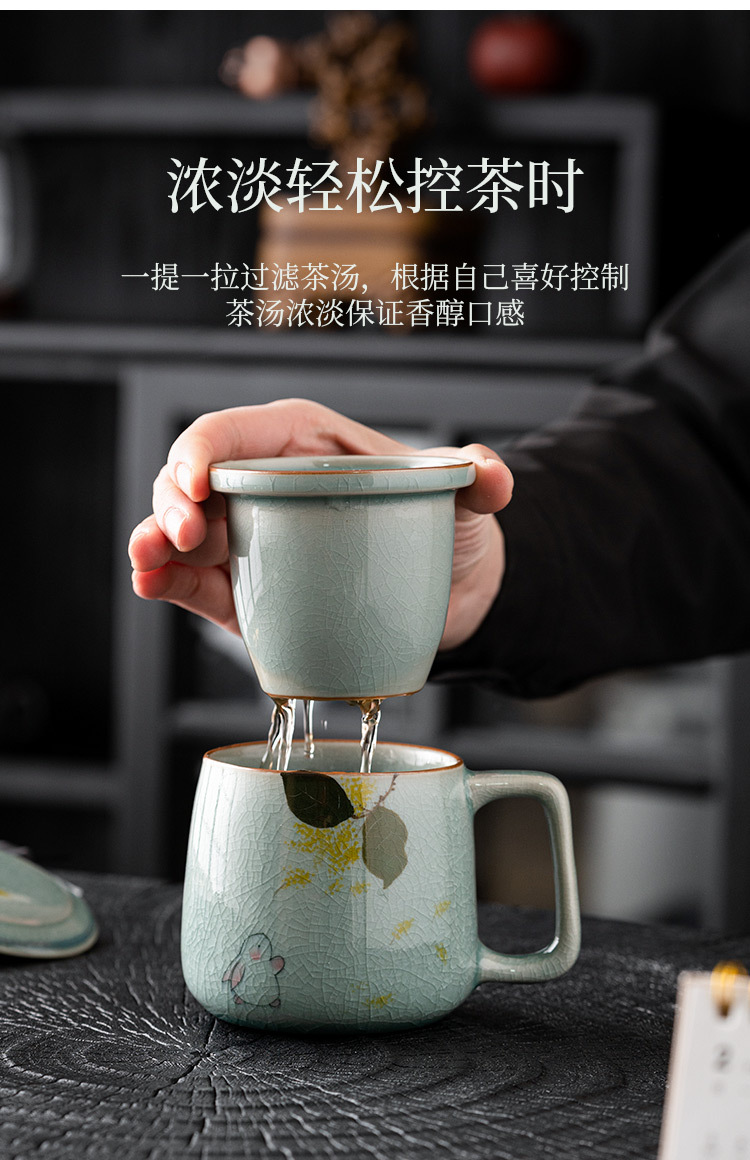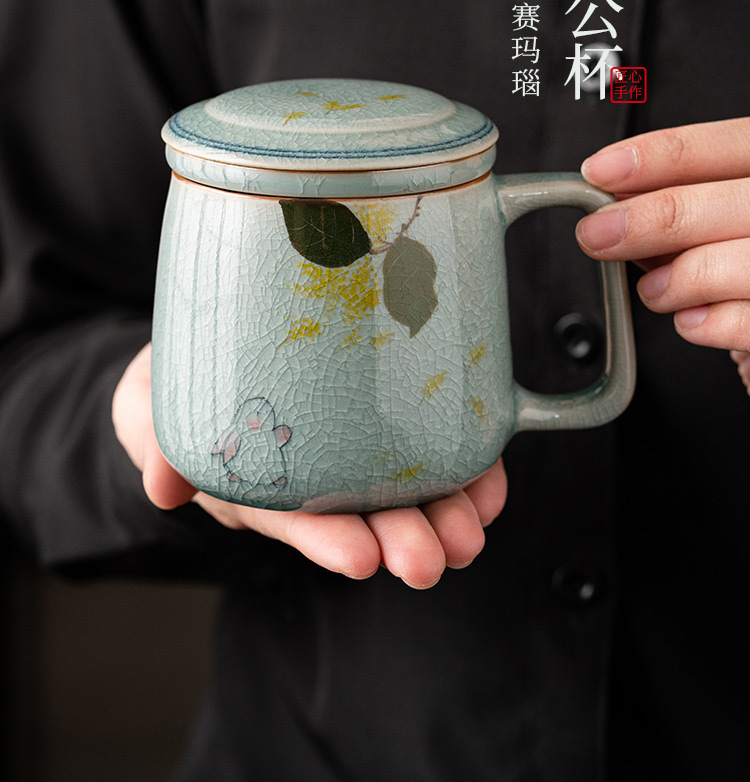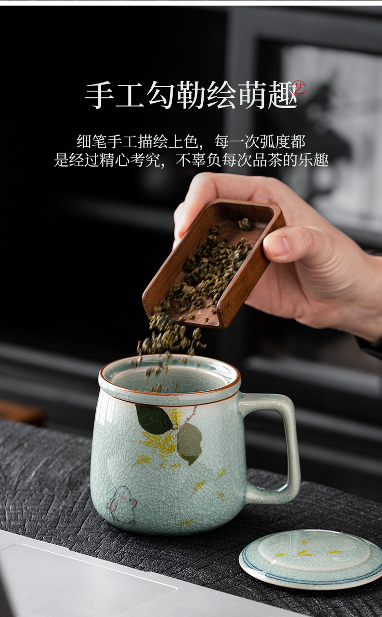 Cốc Thỏ ngọc vẽ tay Borneol Cốc pha trà văn phòng có nắp cốc tách trà chuyên dụng cá nhân Cốc sứ