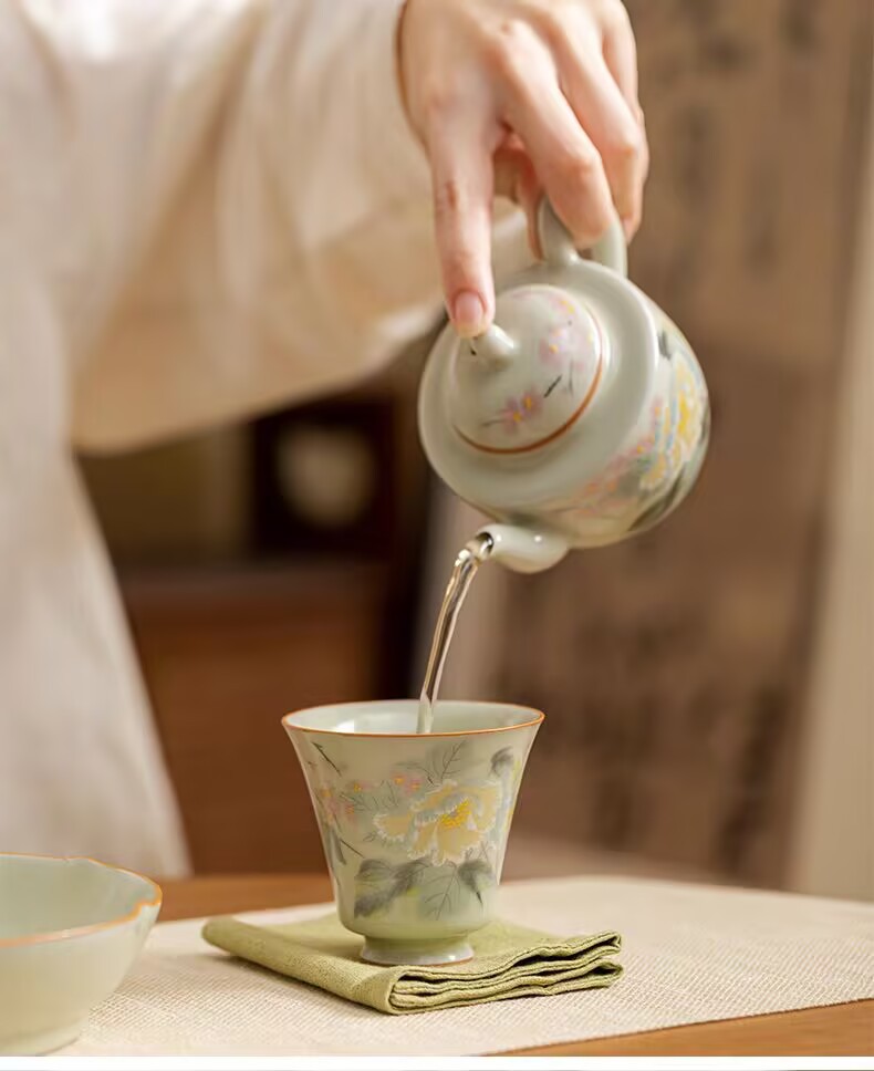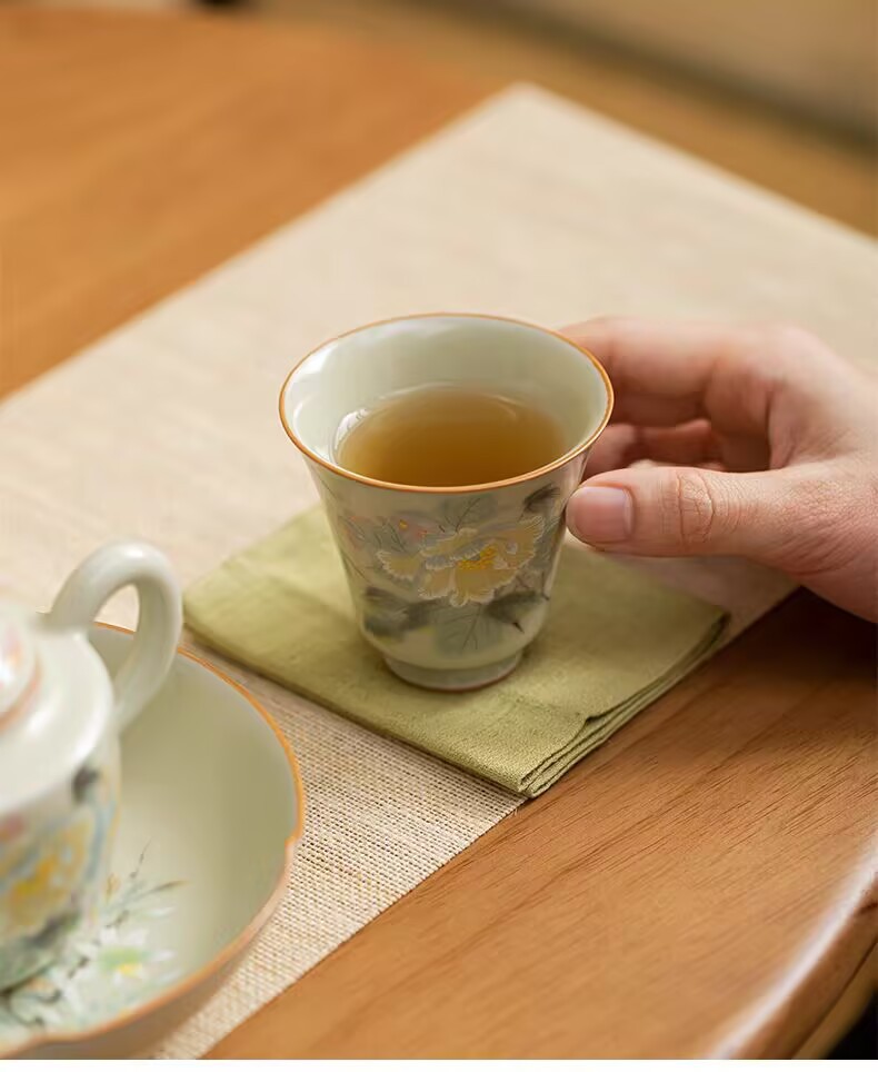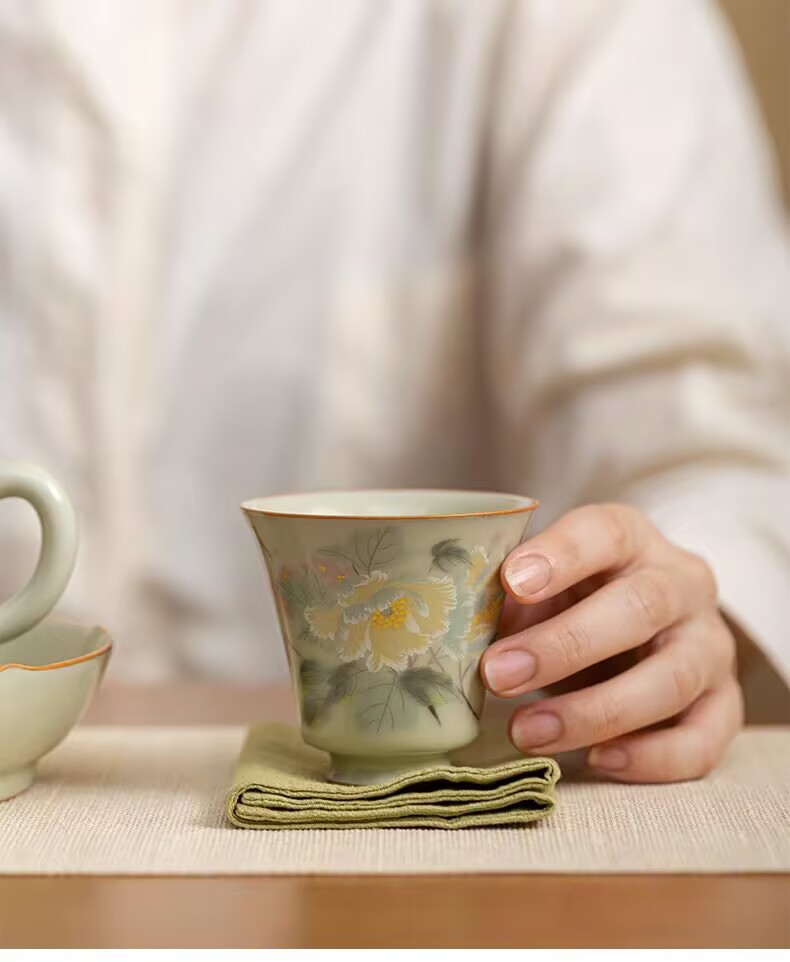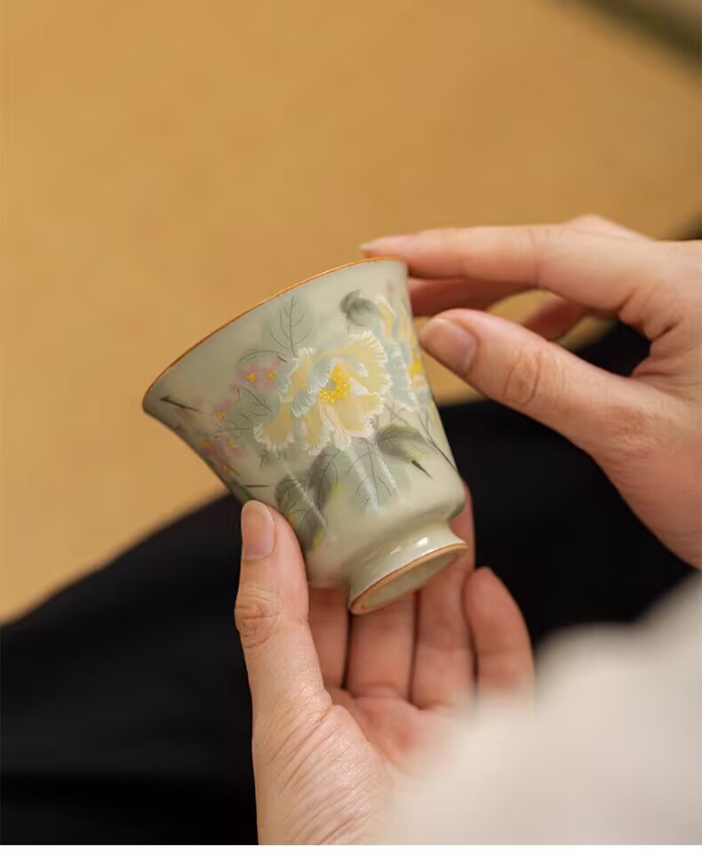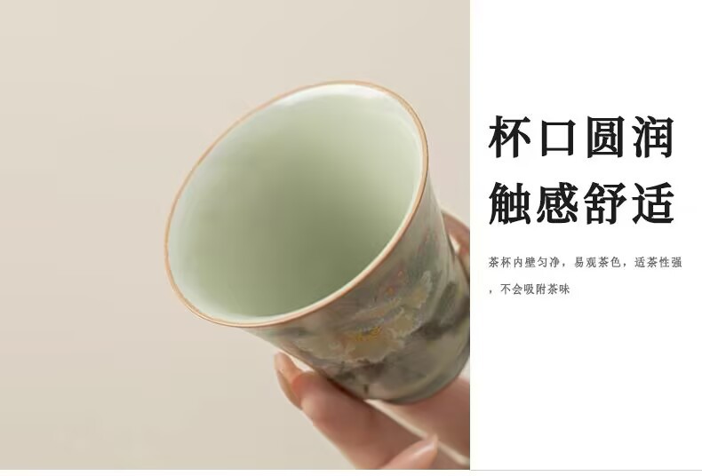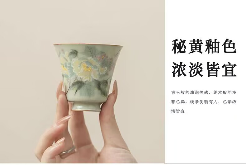 - Cốc thơm miệng mở kiểu Trung Quốc cổ điển lò Hoàng Ru bí mật cốc đơn nhỏ bộ trà kung fu gia dụng cốc chủ nhân tách trà