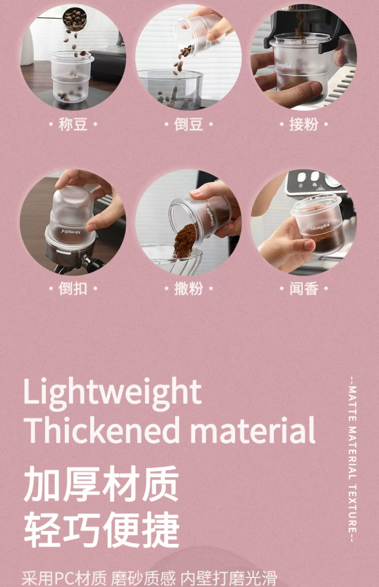 - Cốc thu gom bã cà phê Mongdio, dụng cụ thu gom bã cà phê, cốc cân hạt cà phê, cốc thơm, tay cầm, cốc thu gom bã cà phê kiểu Ý 58mm