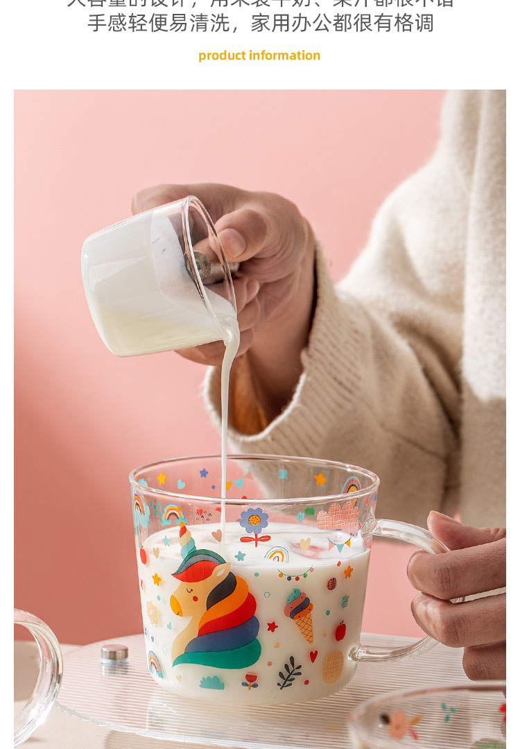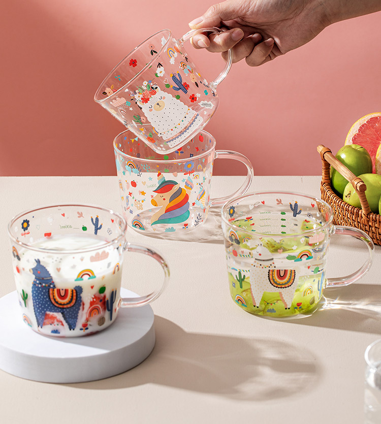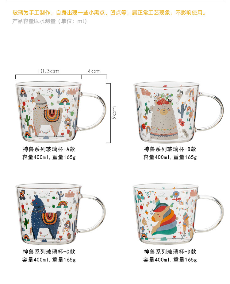 Cốc thủy tinh có vảy Thần Thú cốc sữa nóng chống cháy nổ có giá trị cao chịu nhiệt độ cao Cốc uống nước nữ sinh gia dụng