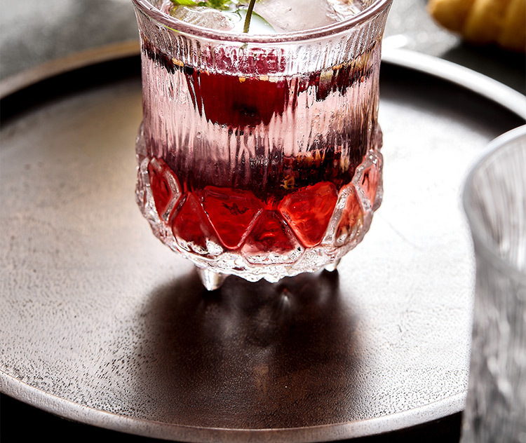 Cốc thủy tinh hoa văn cây cốc uống nước dày gia dụng ly rượu whisky cốc nước trái cây tráng miệng cốc nước trái cây cốc cao cốc có giá trị cao