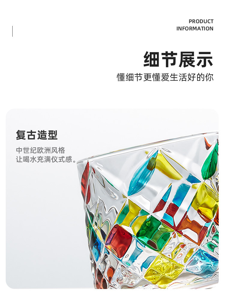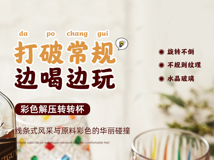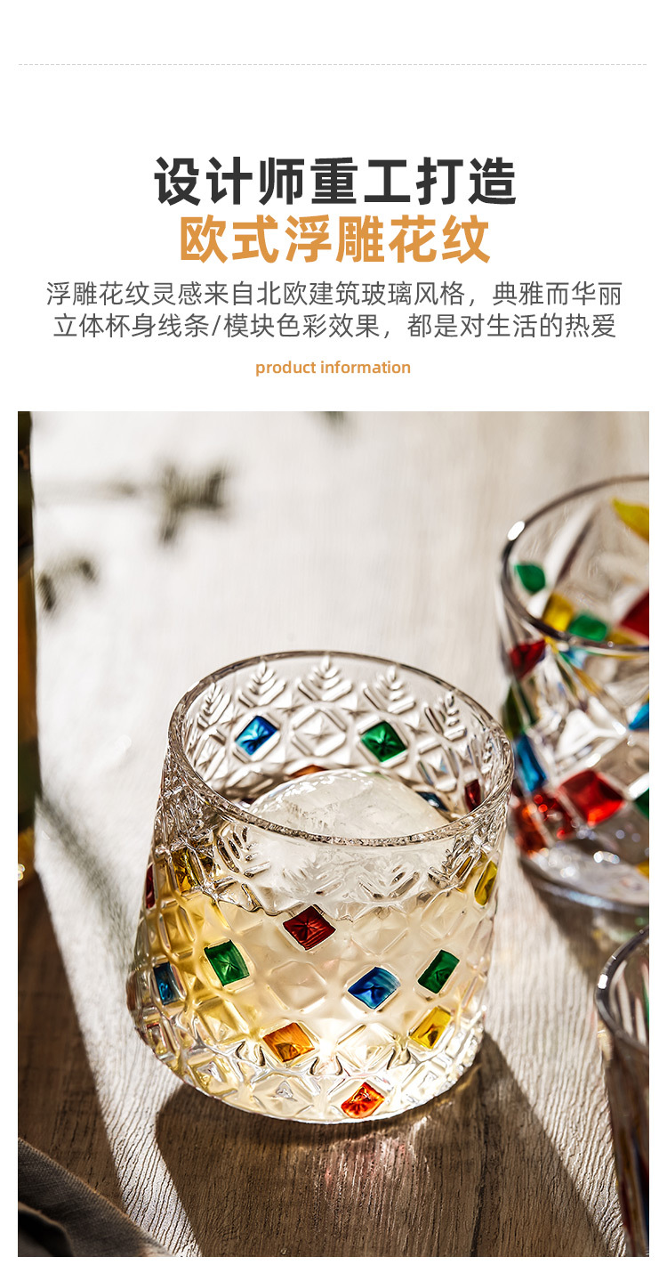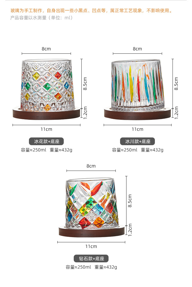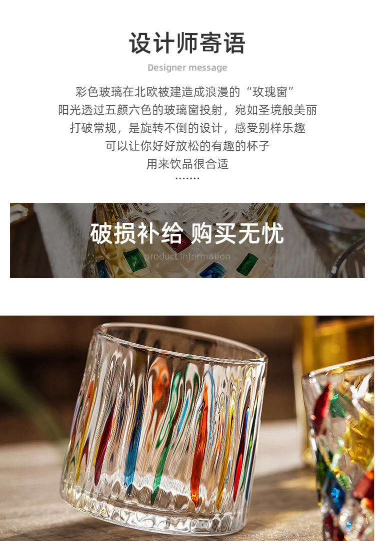 Cốc thủy tinh màu có giá trị cao, ly rượu Whisky phong cách ins, ly rượu ngoại có khay gỗ, ly giải nén xoay nước uống