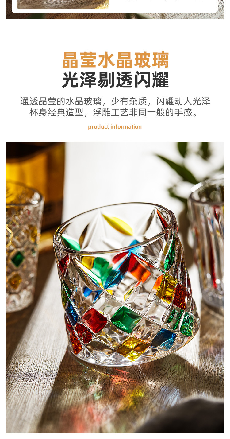 - Cốc thủy tinh màu có giá trị cao, ly rượu Whisky phong cách ins, ly rượu ngoại có khay gỗ, ly giải nén xoay nước uống
