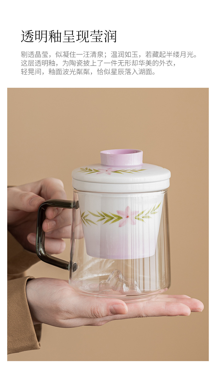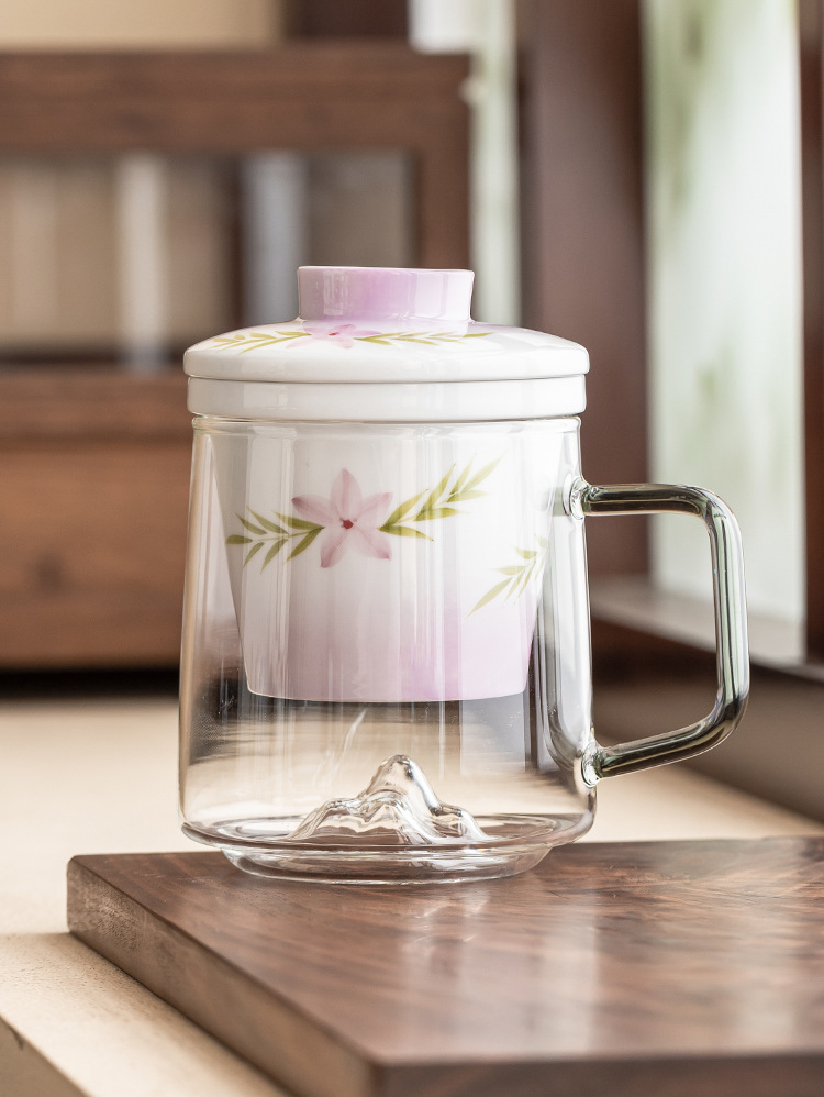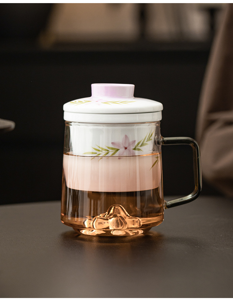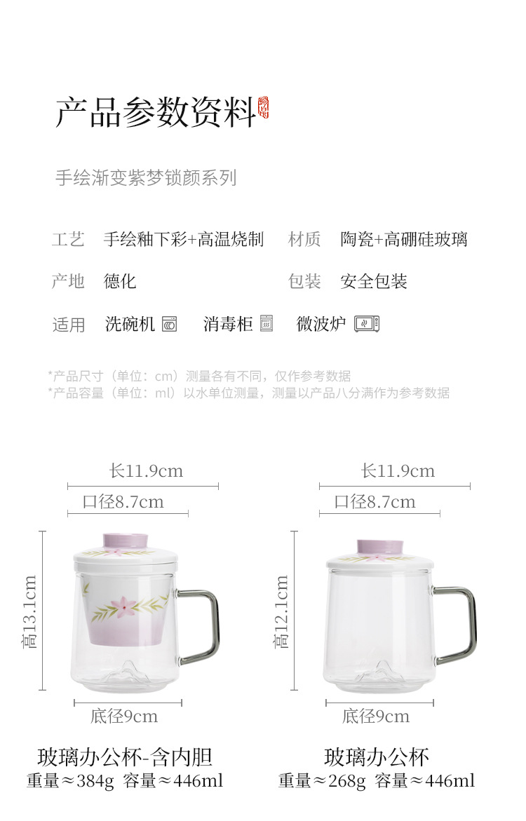 Cốc thủy tinh màu tím gradient cốc văn phòng mơ khóa mặt cốc pha trà tách trà cốc uống nước gia dụng gốm sứ
