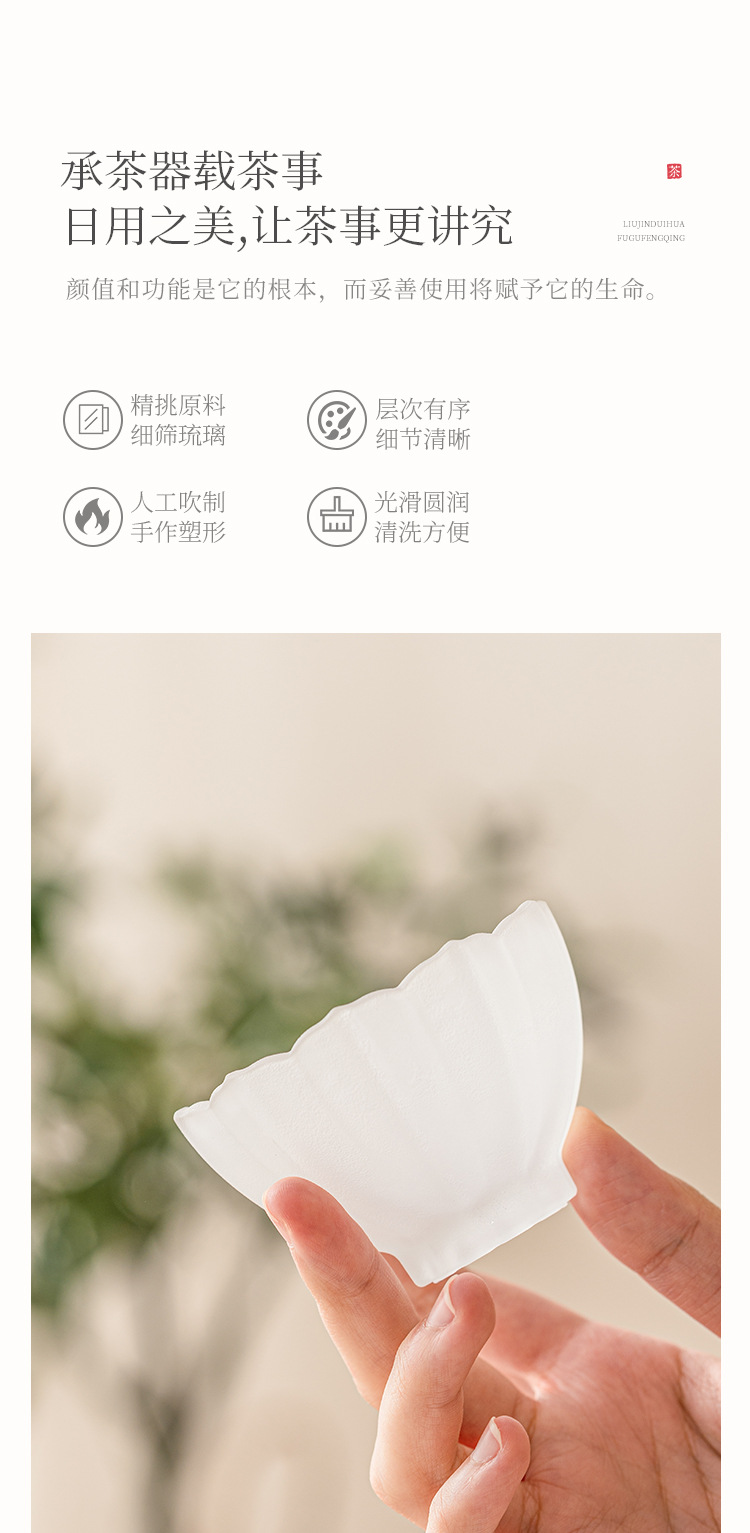 - Cốc thủy tinh mờ cổ cốc hoa sen cốc trà cao cấp trà Kung Fu cốc trà đơn cốc chủ nhân cốc đơn