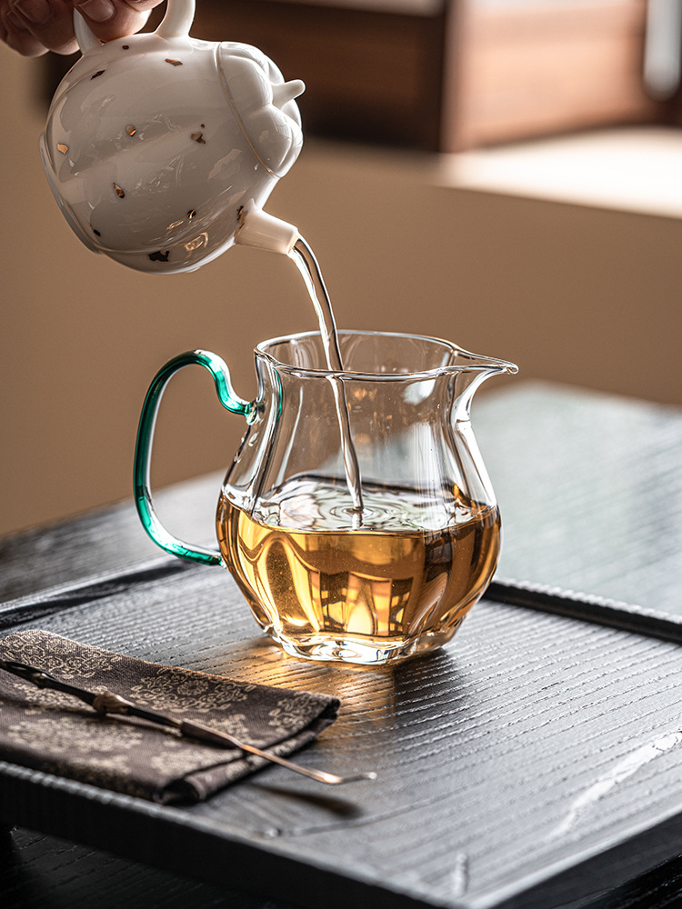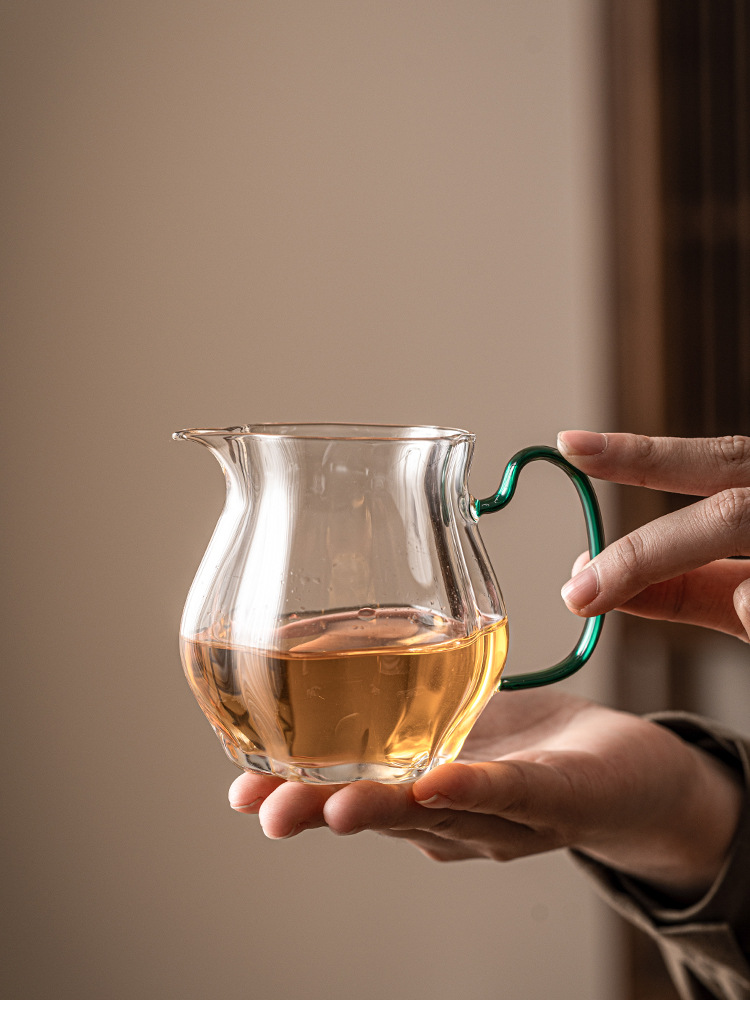 - Cốc thủy tinh trong suốt có tay cầm, dụng cụ pha trà Haifen, dụng cụ pha trà gia dụng, cốc lọc đều, dụng cụ pha trà Kung Fu, phụ kiện