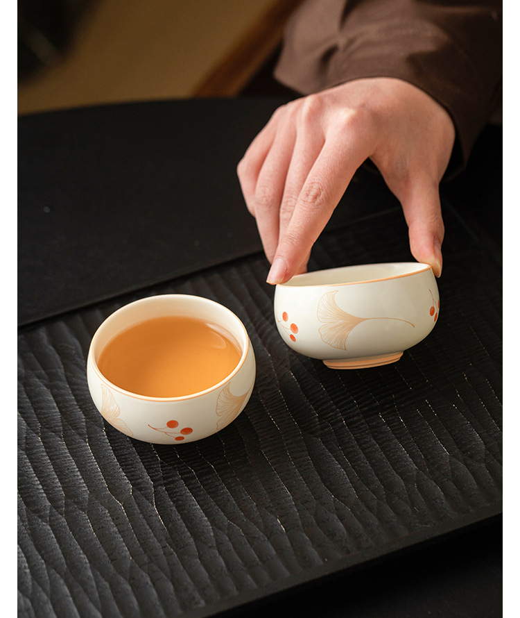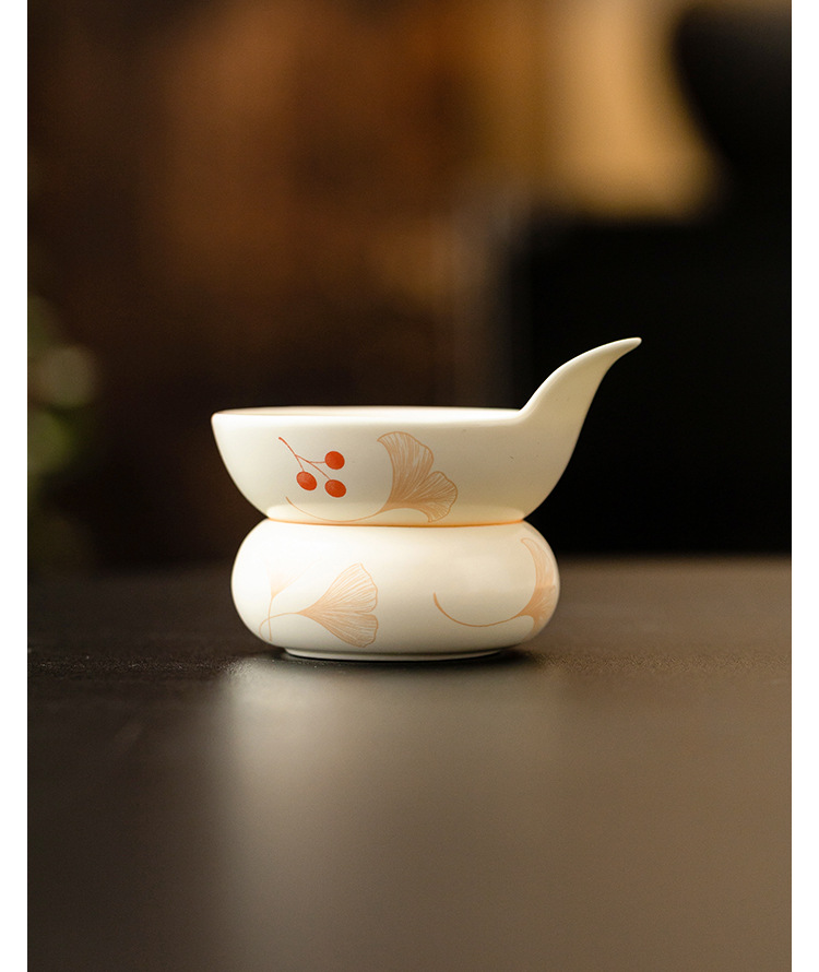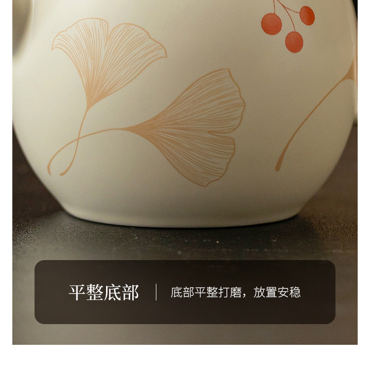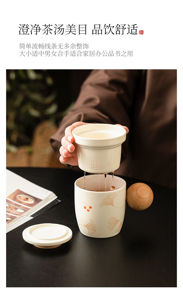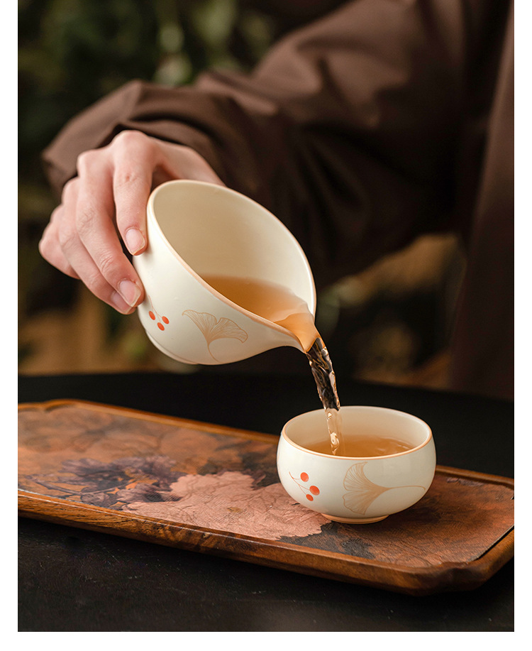 Cốc trà bạch quả màu be, ấm trà, lọc trà, tách trà, tách trà, cốc chủ nhân, bộ trà gốm sứ tươi trẻ, sản phẩm duy nhất