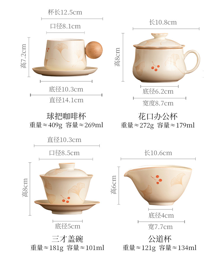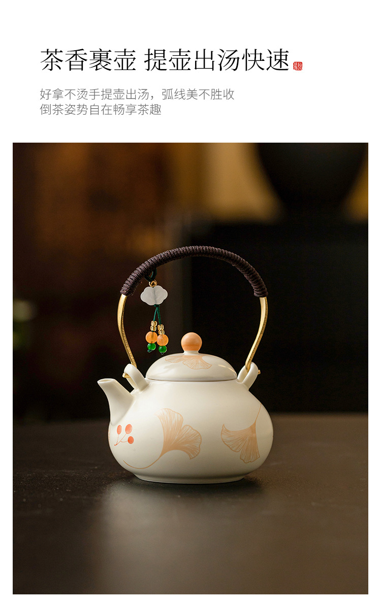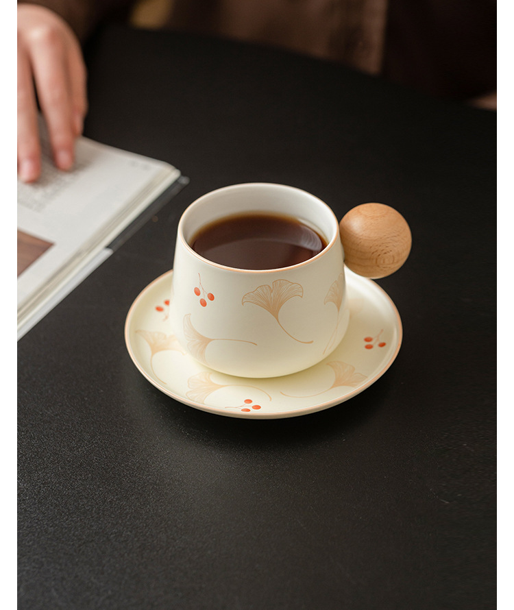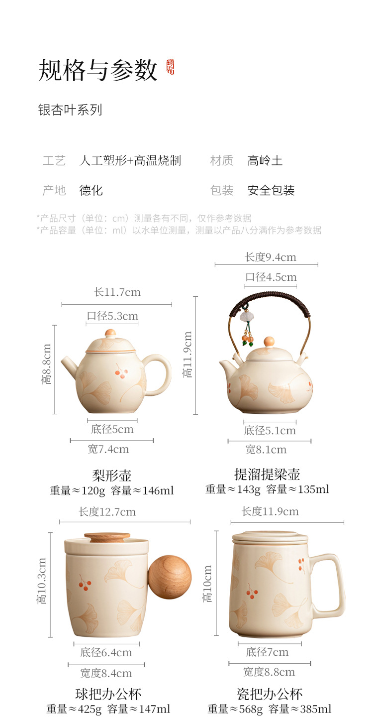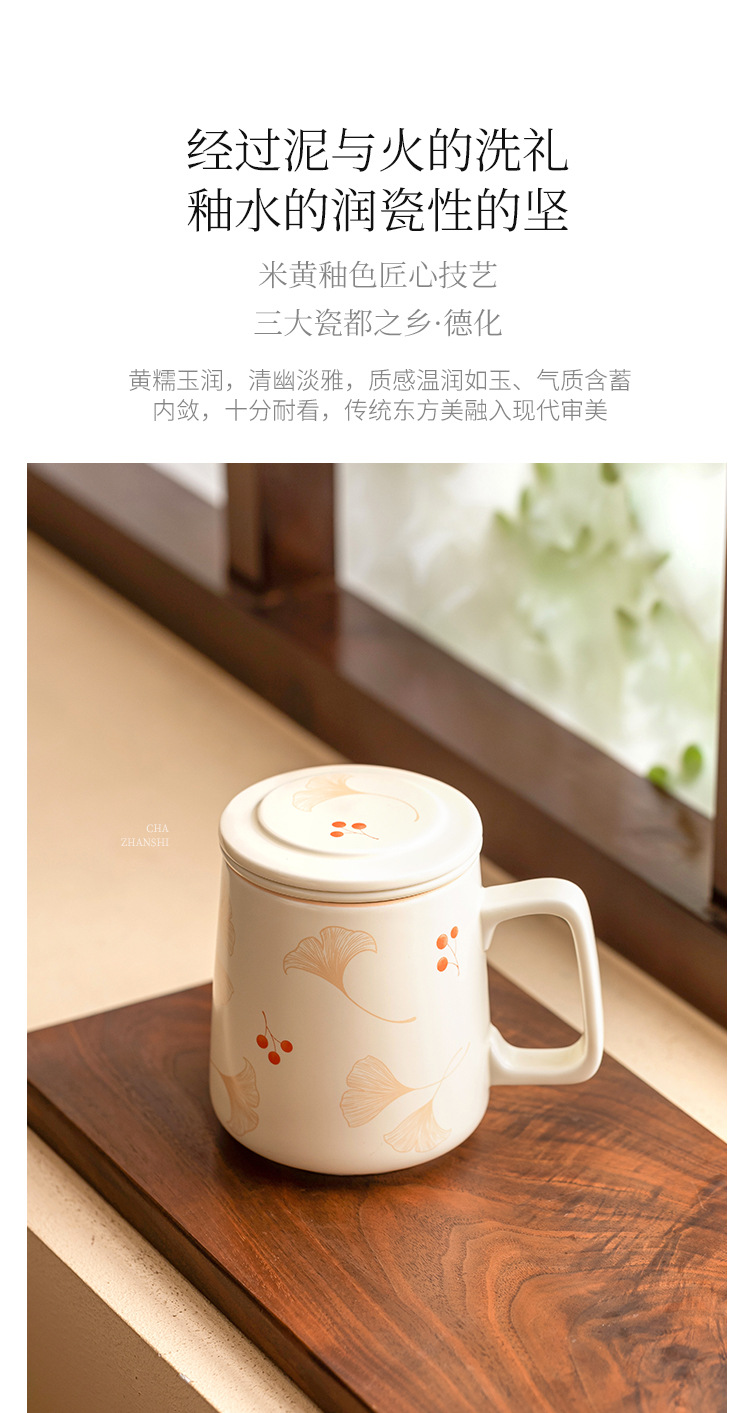 Cốc trà bạch quả màu be, ấm trà, lọc trà, tách trà, tách trà, cốc chủ nhân, bộ trà gốm sứ tươi trẻ, sản phẩm duy nhất